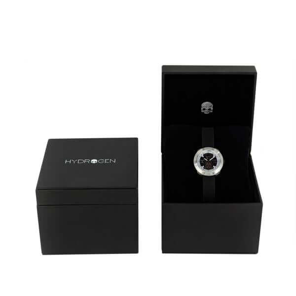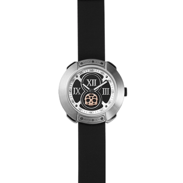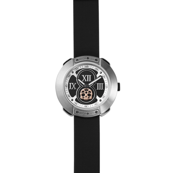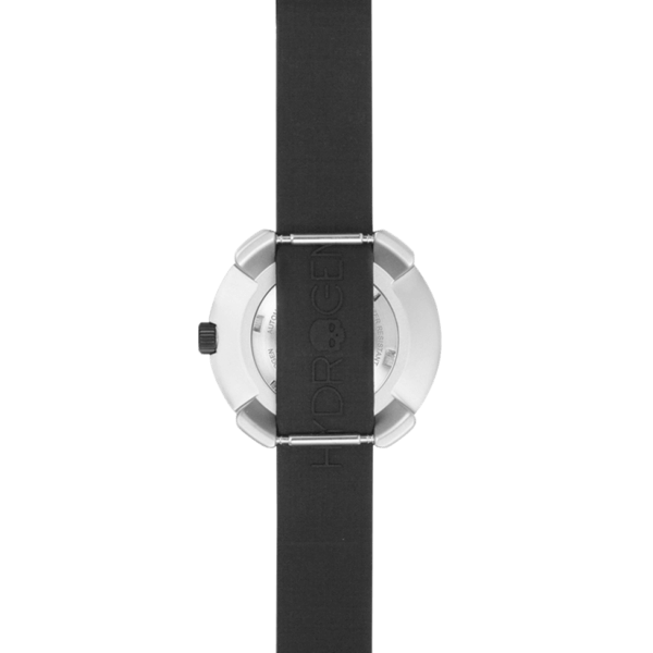 A black on black color story for this Hydrogen Watch with black silicone single piece pull-through strap elevates the Vista collection to a “go anywhere and make a statement” accessory. This elegant yet function focused timepiece features a black dial with roman numerals and a Silver stainless steel case in 29mm.