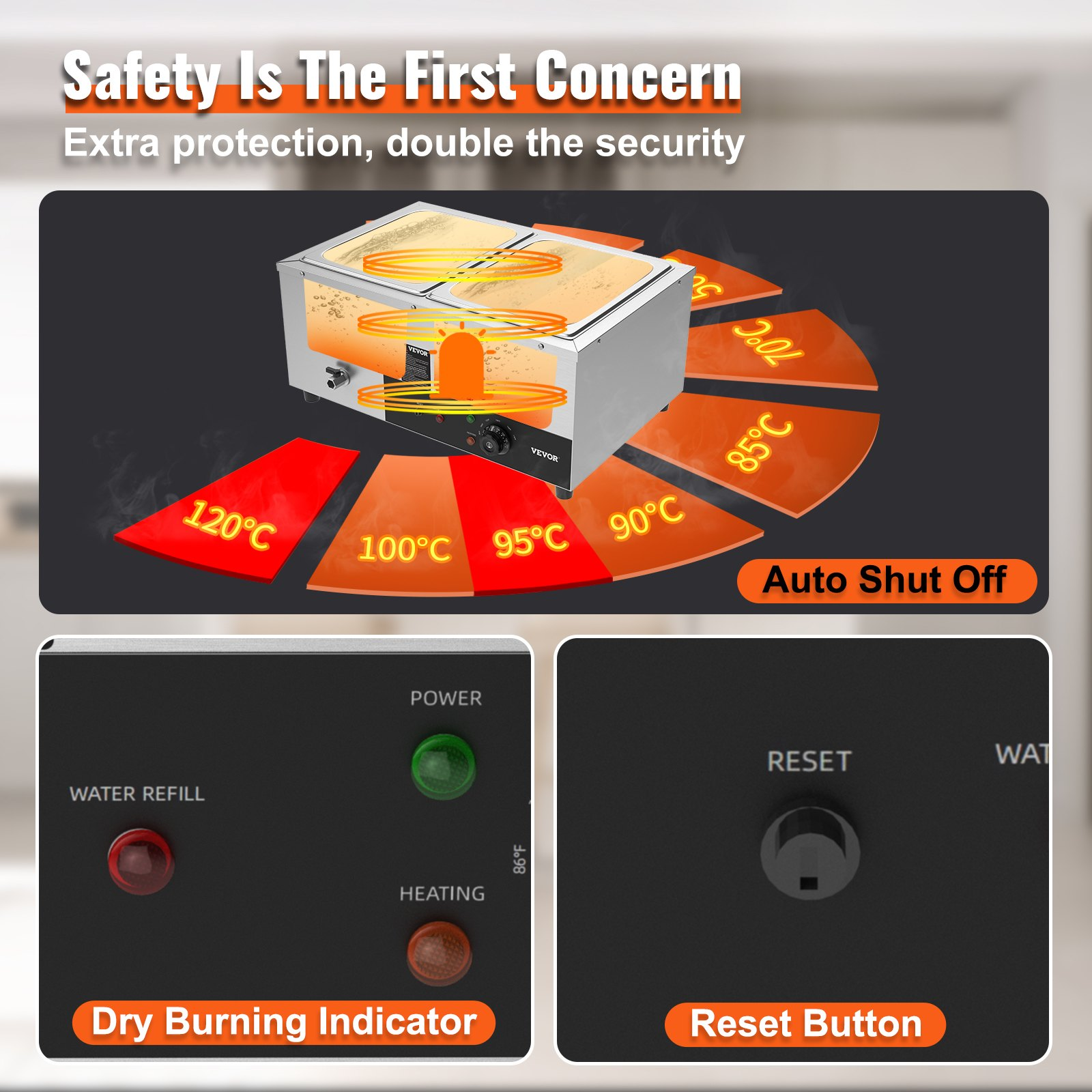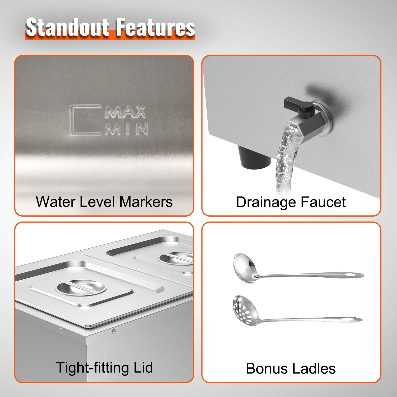 PRODUCT DESCRIPTION VEVOR 2-Pan Commercial Food Warmer, 2 x 12QT Electric Steam Table, 1500W Professional Countertop Stainless Steel Buffet Bain Marie with 86-185°F Temp Control for Catering and Restaurants, Silver