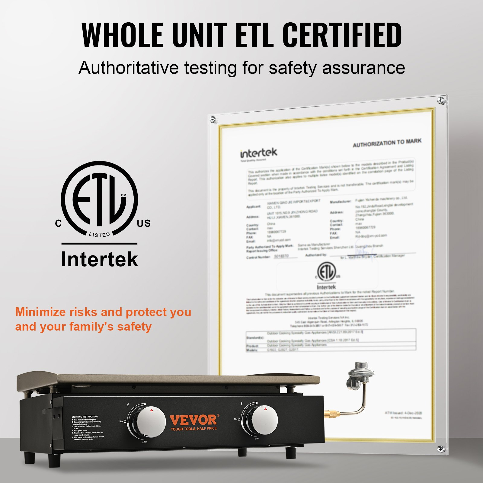 PRODUCT DESCRIPTION VEVOR Commercial Griddle, 22.4" Heavy Duty Manual Flat Top Griddle, Countertop Gas Grill with Non-Stick Cooking Plate, Steel LPG Gas Griddle, H-Shaped Burner Restaurant Portable Grill, 22,000 BTU