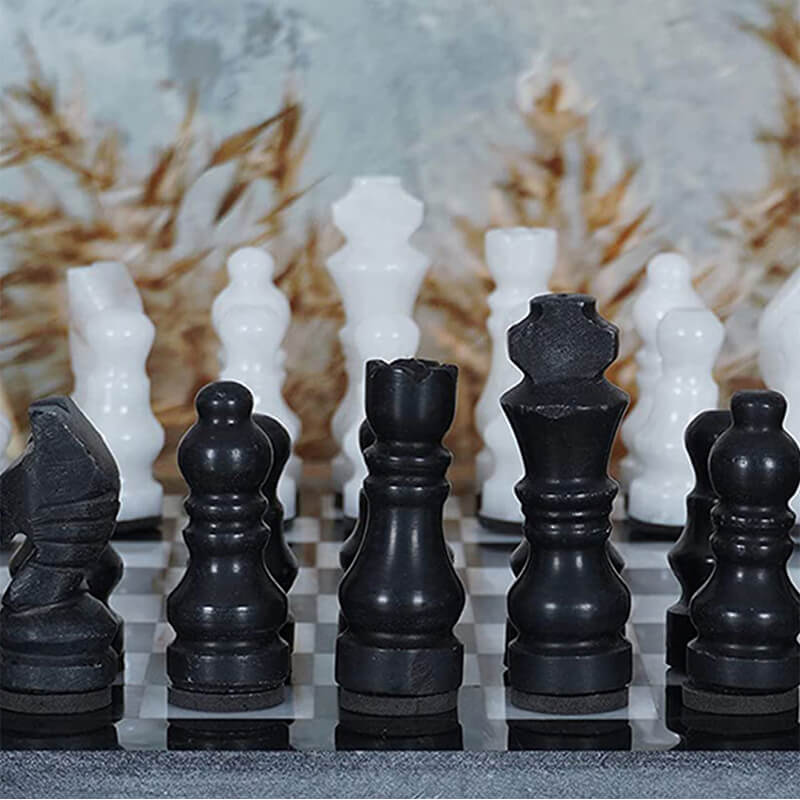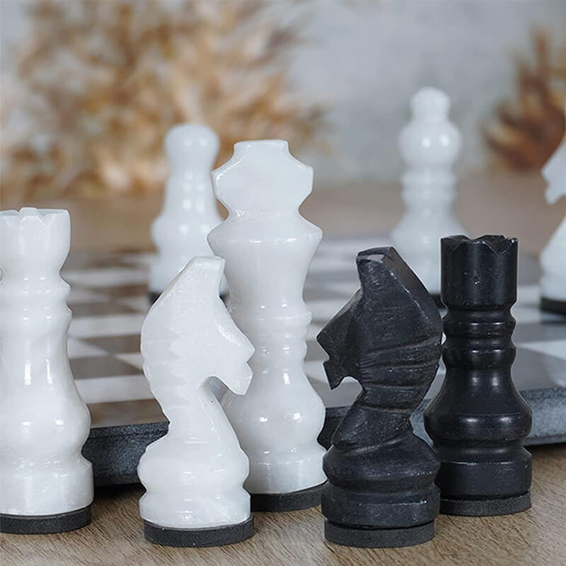 - Material: This chess set is from high quality marble onyx. Chess Board & Chess pieces are fully hand polished.