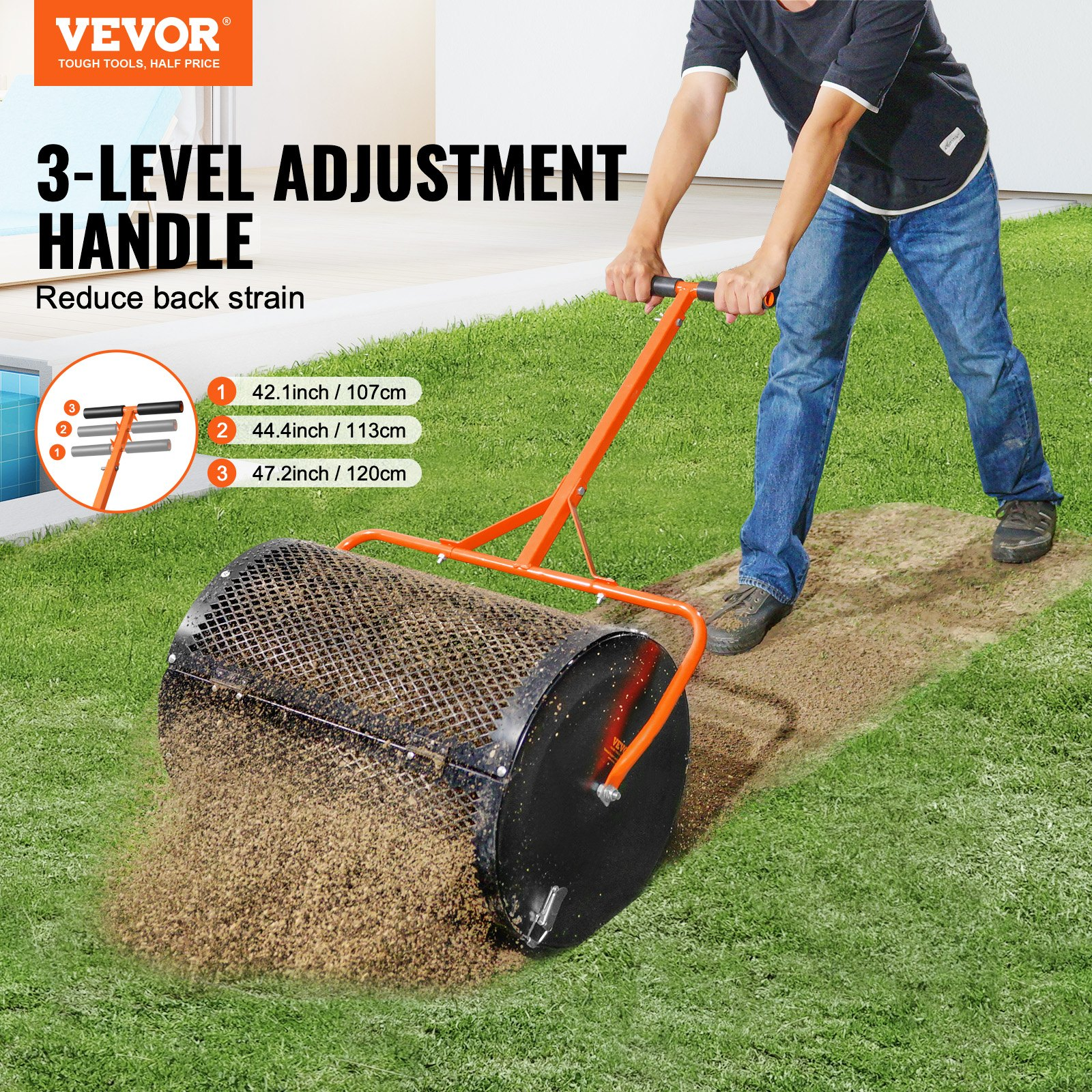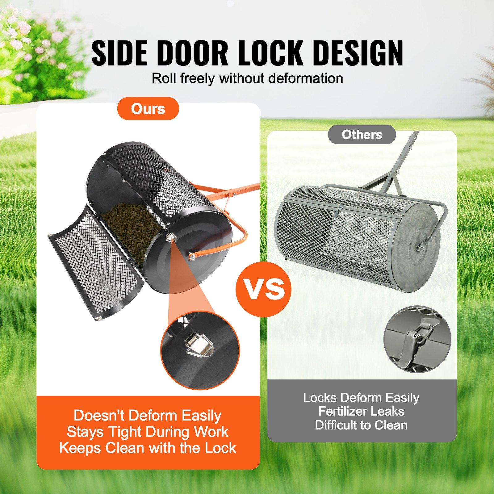VEVOR 24" Compost Spreader Peat Moss Spreader Roller Lawn Spreader Black