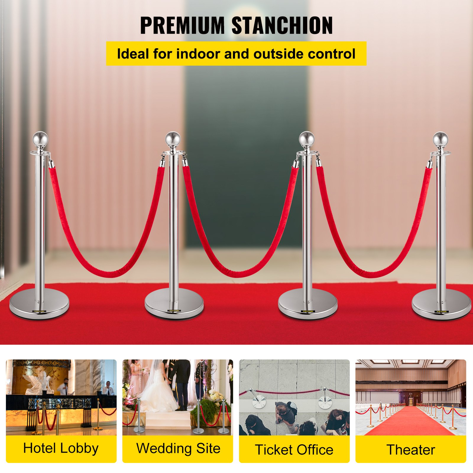 Overall Height: 37.8 in / 96 cm,Base Diameter: 12.6 in / 32 cm,Rope Material: Flannel,Model: Silver Stanchions 4Pcs,Column Material: Stainless Steel, Zinc Alloy,Item Weight: 29 lbs / 13 kg,Tube Diameter: 2 in / 5.1 cm,Rope Length: 5 ft / 1.5 m,Rope Color: Red