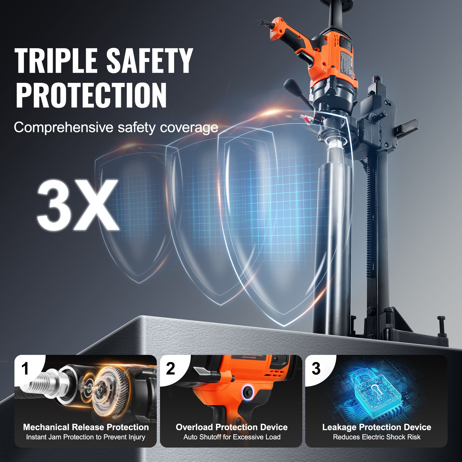 VEVOR Core Drill Machine 0.8-6.3in Dia 2000W Handheld and Stand Core Drill Rig