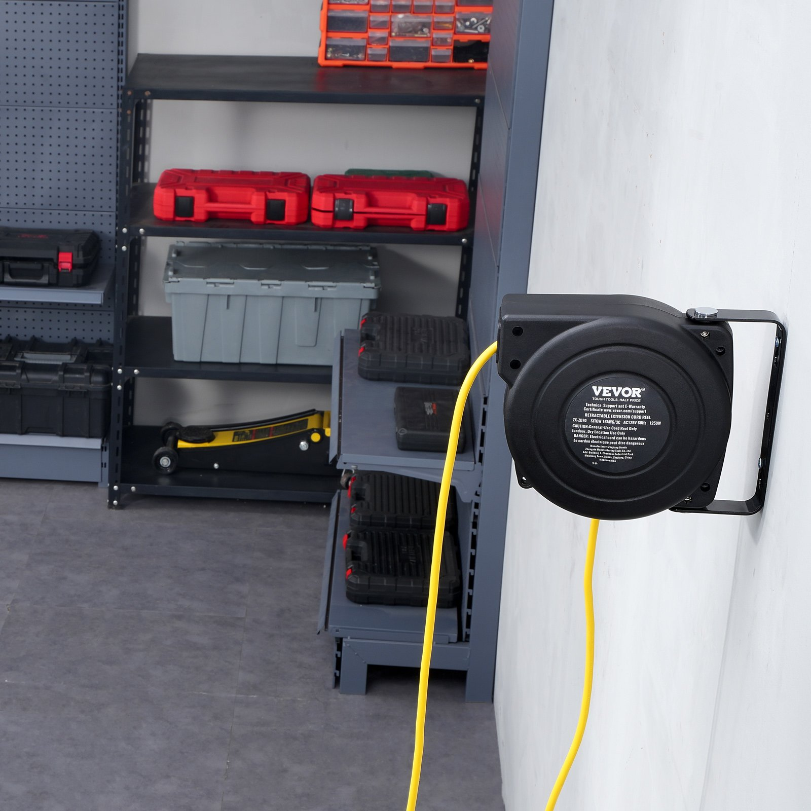 VEVOR Retractable Extension Cord Reel Power Cord Reel 30FT 16AWG/3C SJTOW