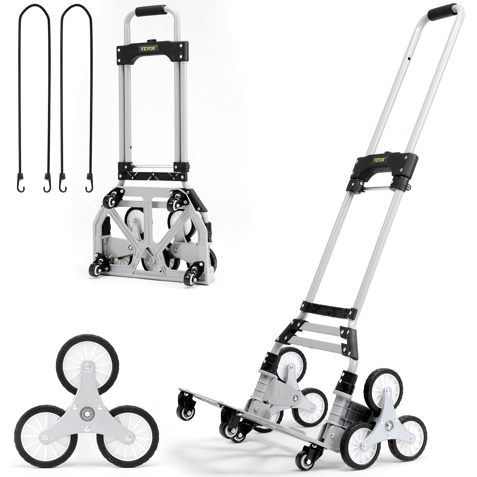 VEVOR Stair Climbing Cart, 220 lbs Capacity Hand Truck with Adjustable Handle, Folding Dolly Cart for Stairs, Stair Climbing Dolly Hand Carts with 10 Wheels for Shopping, Moving, Office Use
