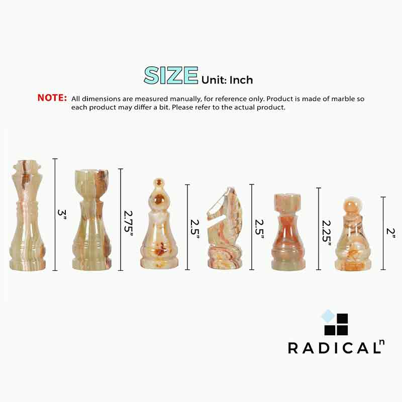 - Material: These chesspieces are from high-quality natural marble onyx and are fully hand polished.