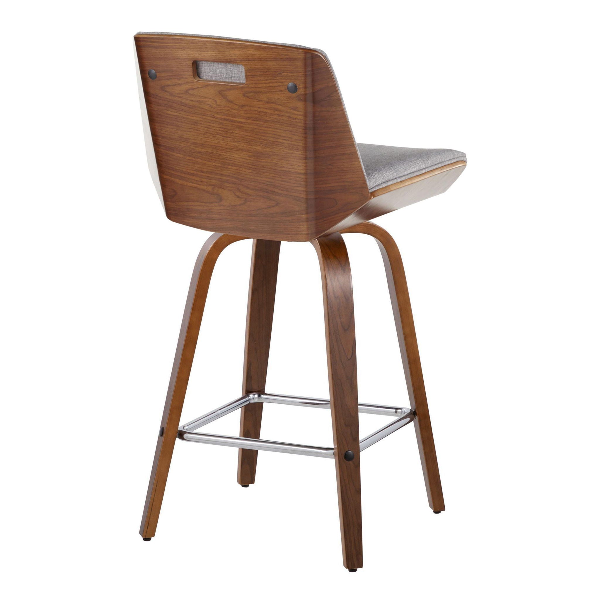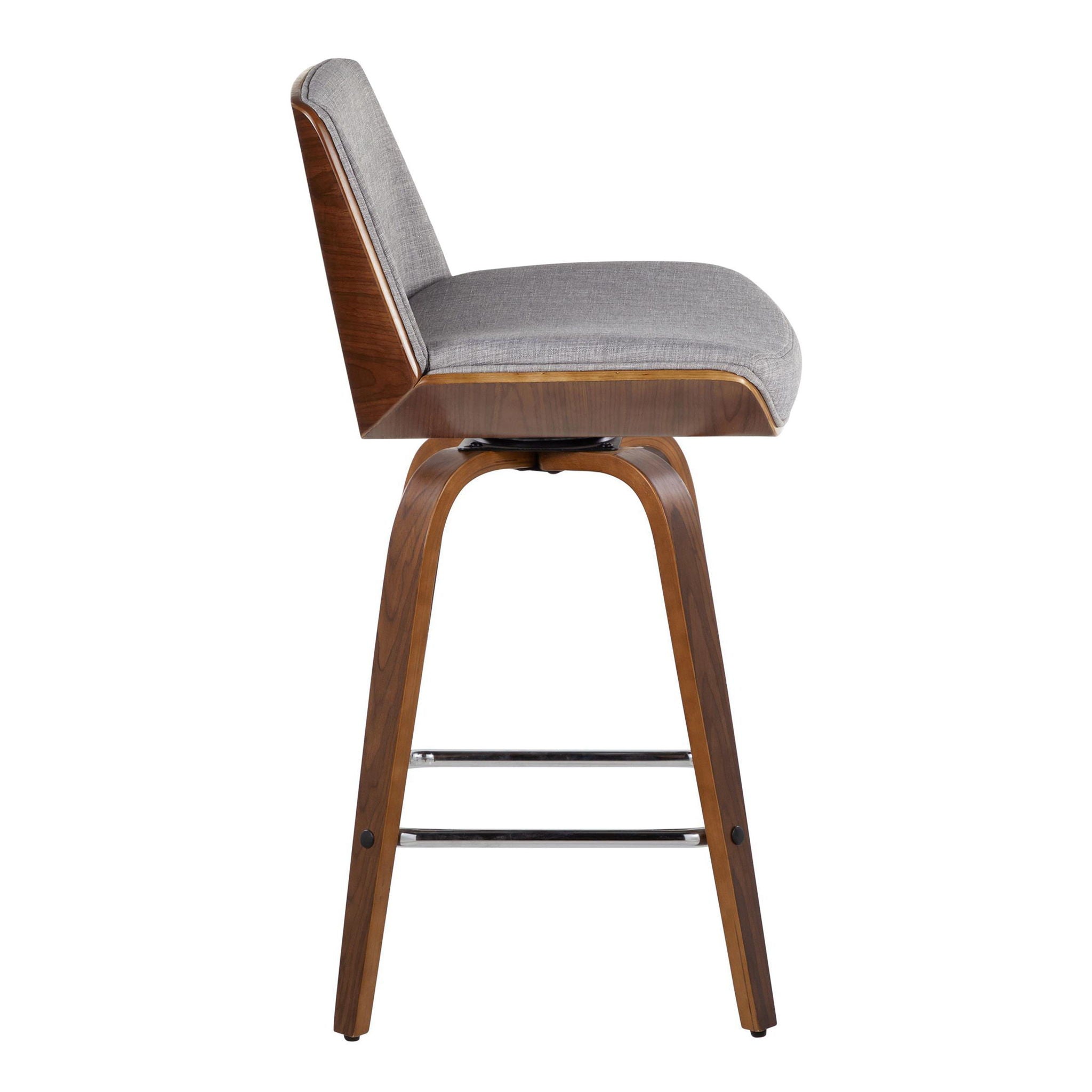 Corazza - Mid-Century Modern Fixed Height Counter Stool With Swivel And Square Footrest (Set of 2) - Walnut / Light Gray