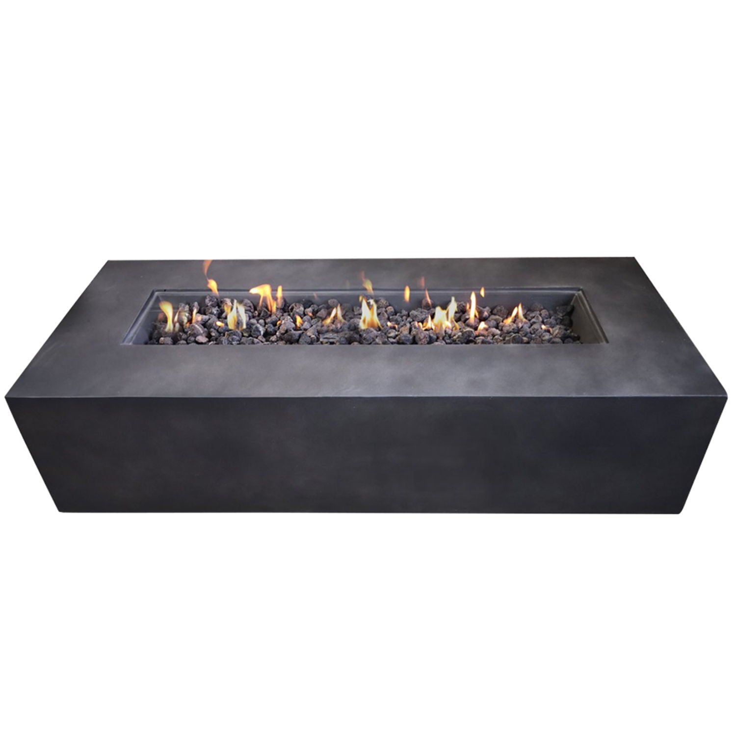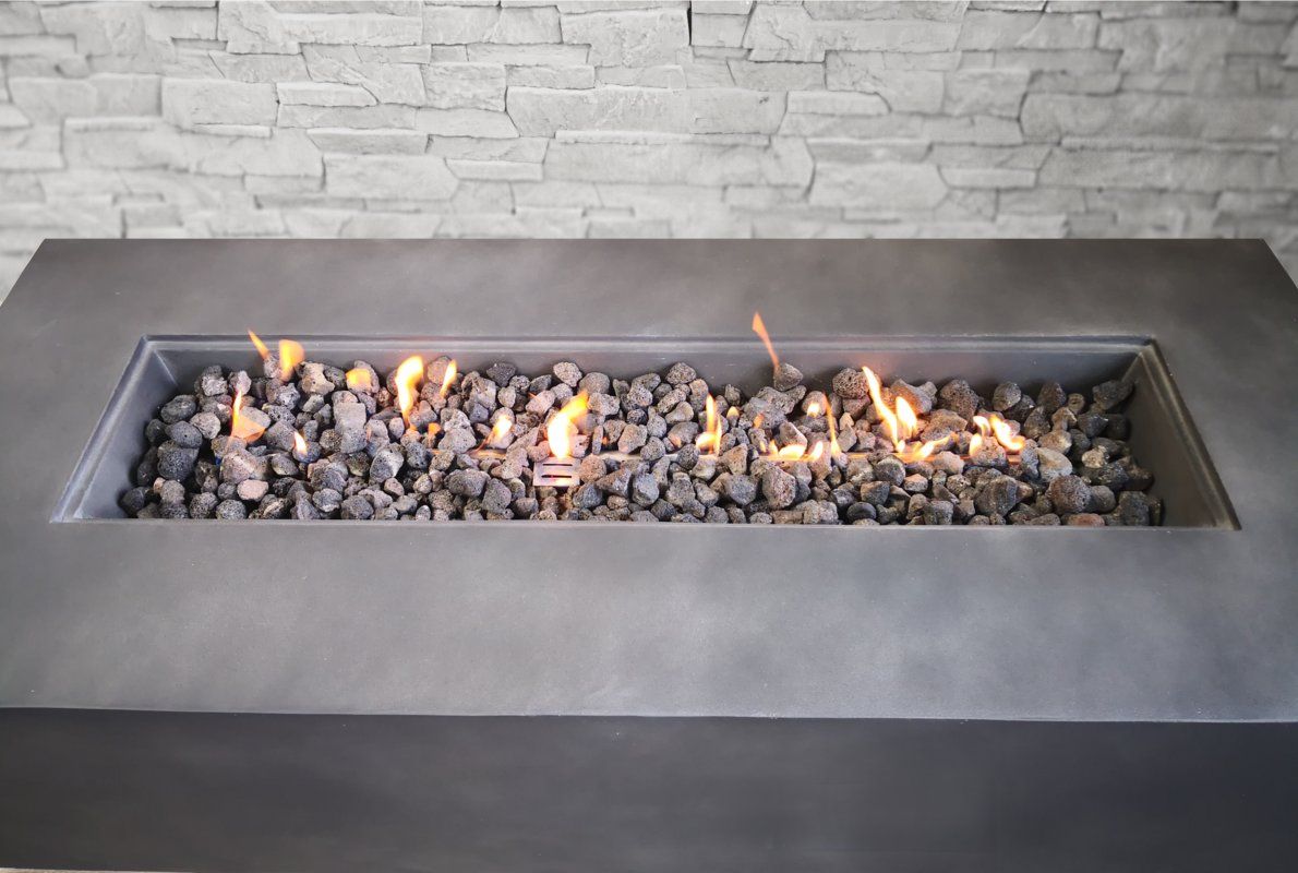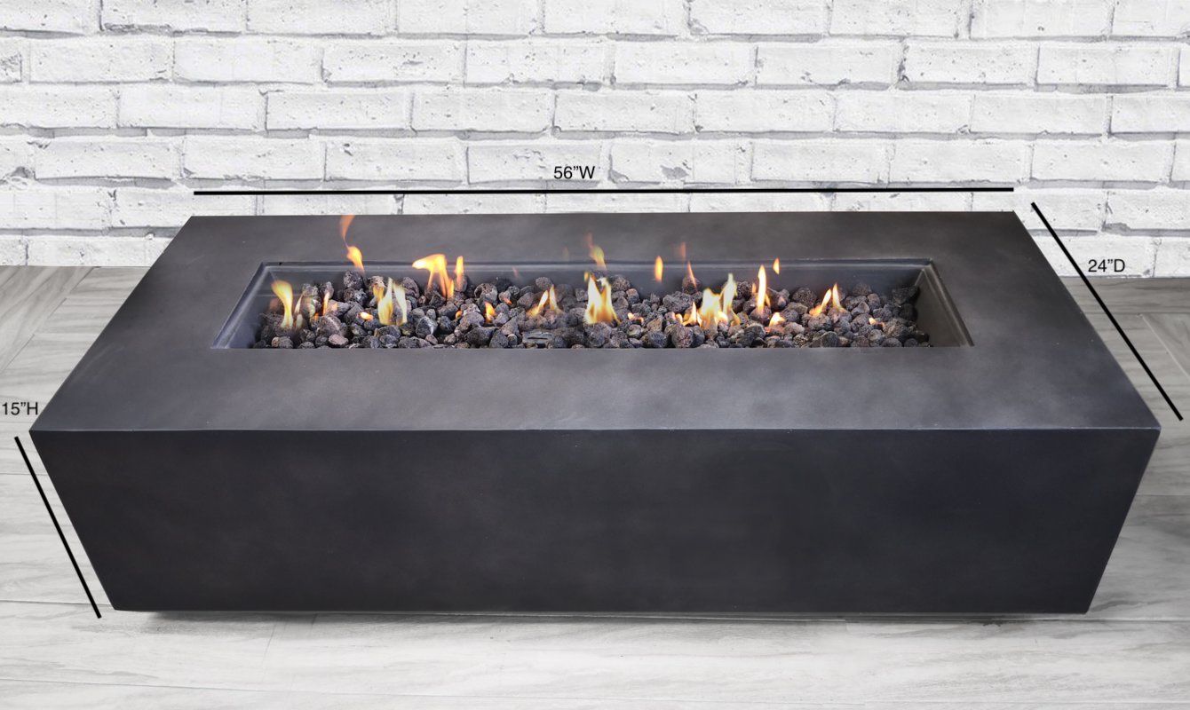 Modern Concrete Design: This fire pit table features a sleek and minimalist concrete construction that adds a contemporary touch to any outdoor space, complementing various design aesthetics.