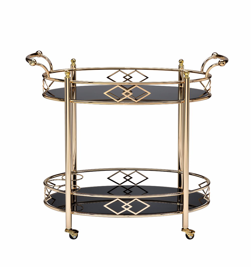 Stylish Design: This serving cart features a sleek metal frame in a black and gold finish, blending sophistication with a modern charm that enhances any space.