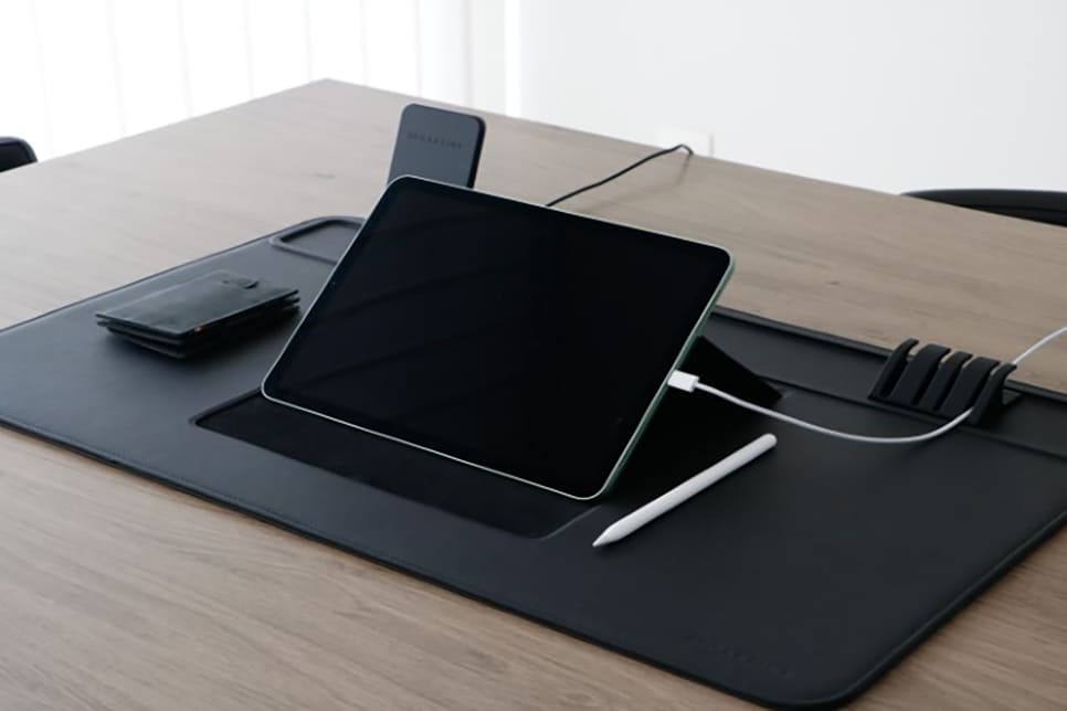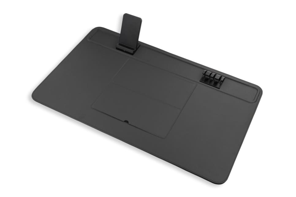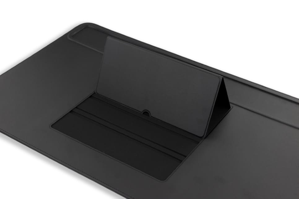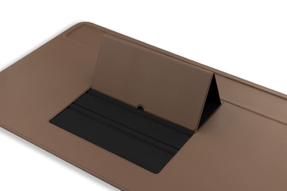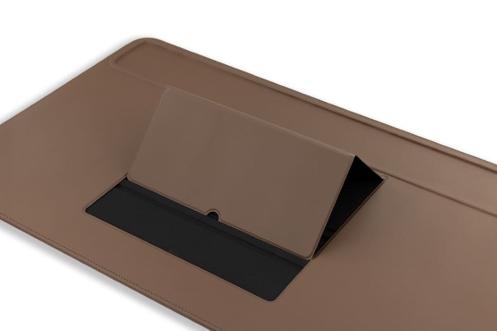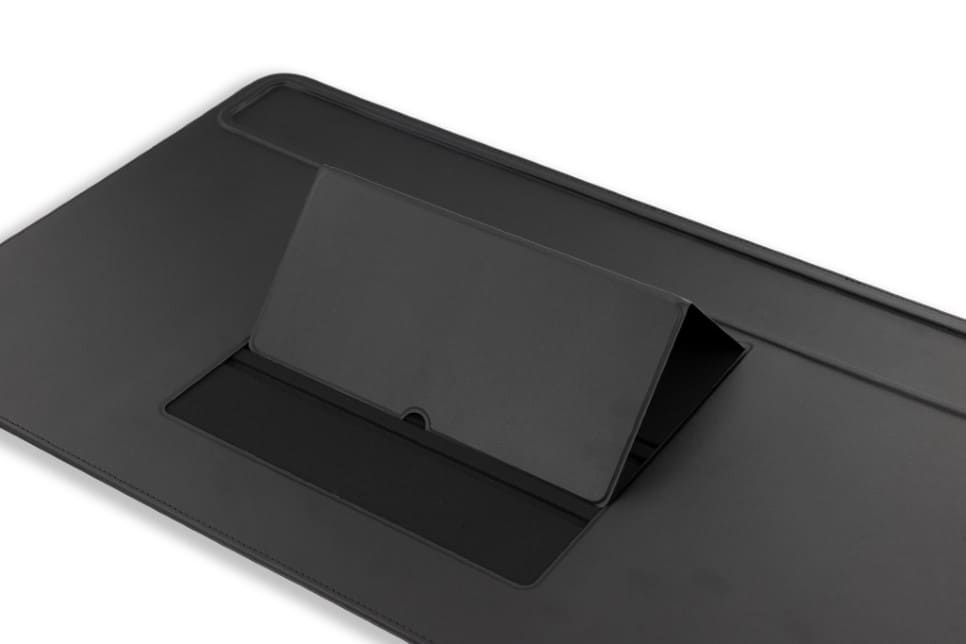 Our vegan leather desk mat will help you maintain a neat and organized work environment. Double your productivity by placing the tablet in the device holder, thus creating a second screen.