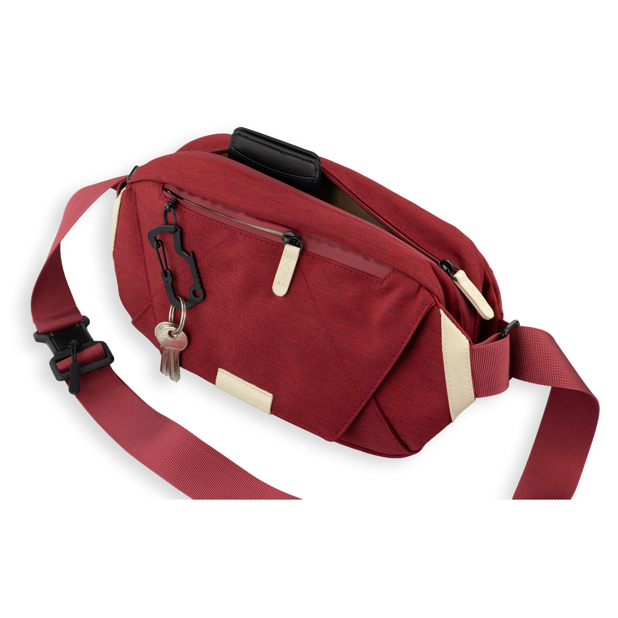 The Frankie Sling Bag: style for your everyday adventures. This compact bag features a spacious main compartment for essentials, plus an expandable 6L capacity.