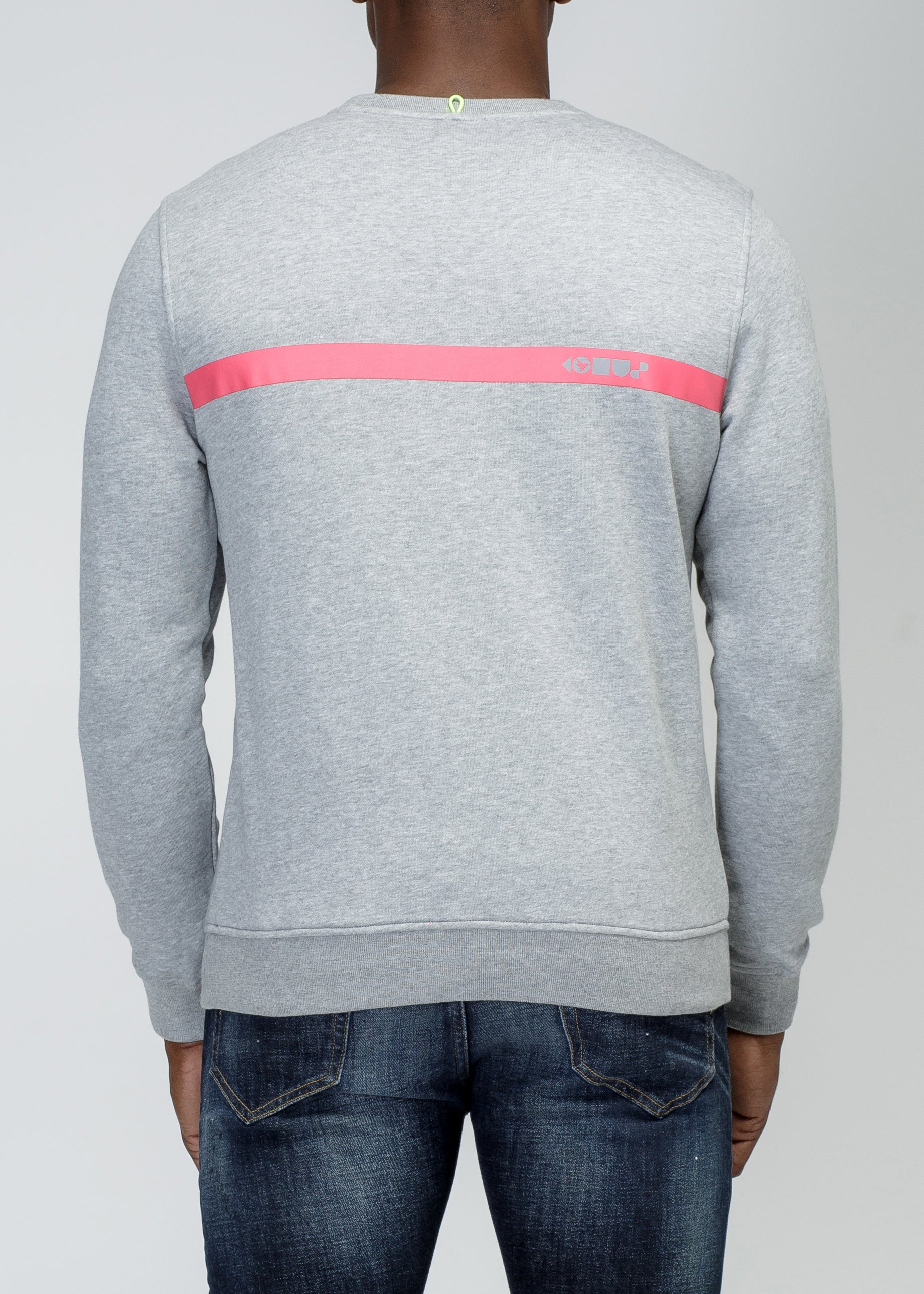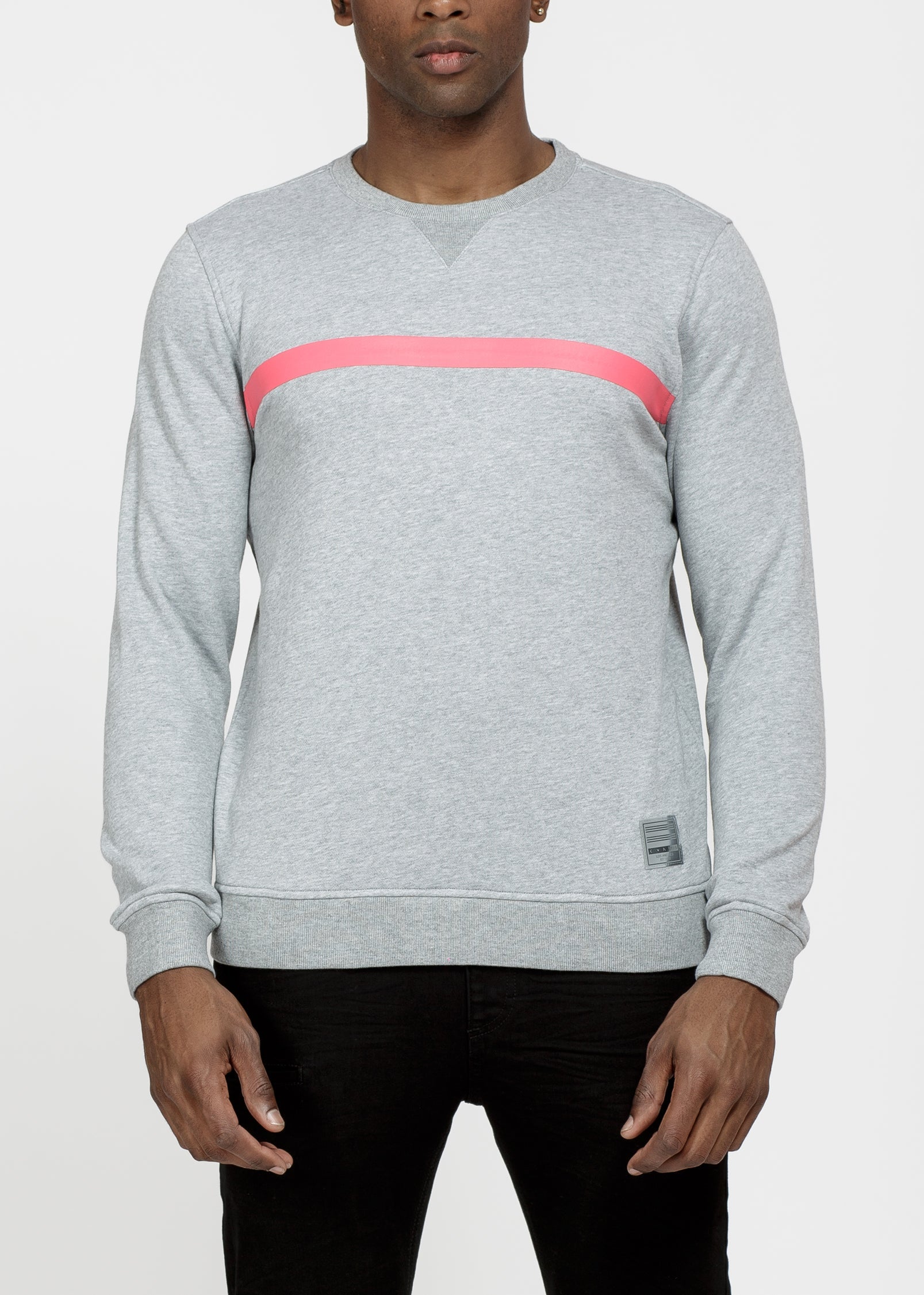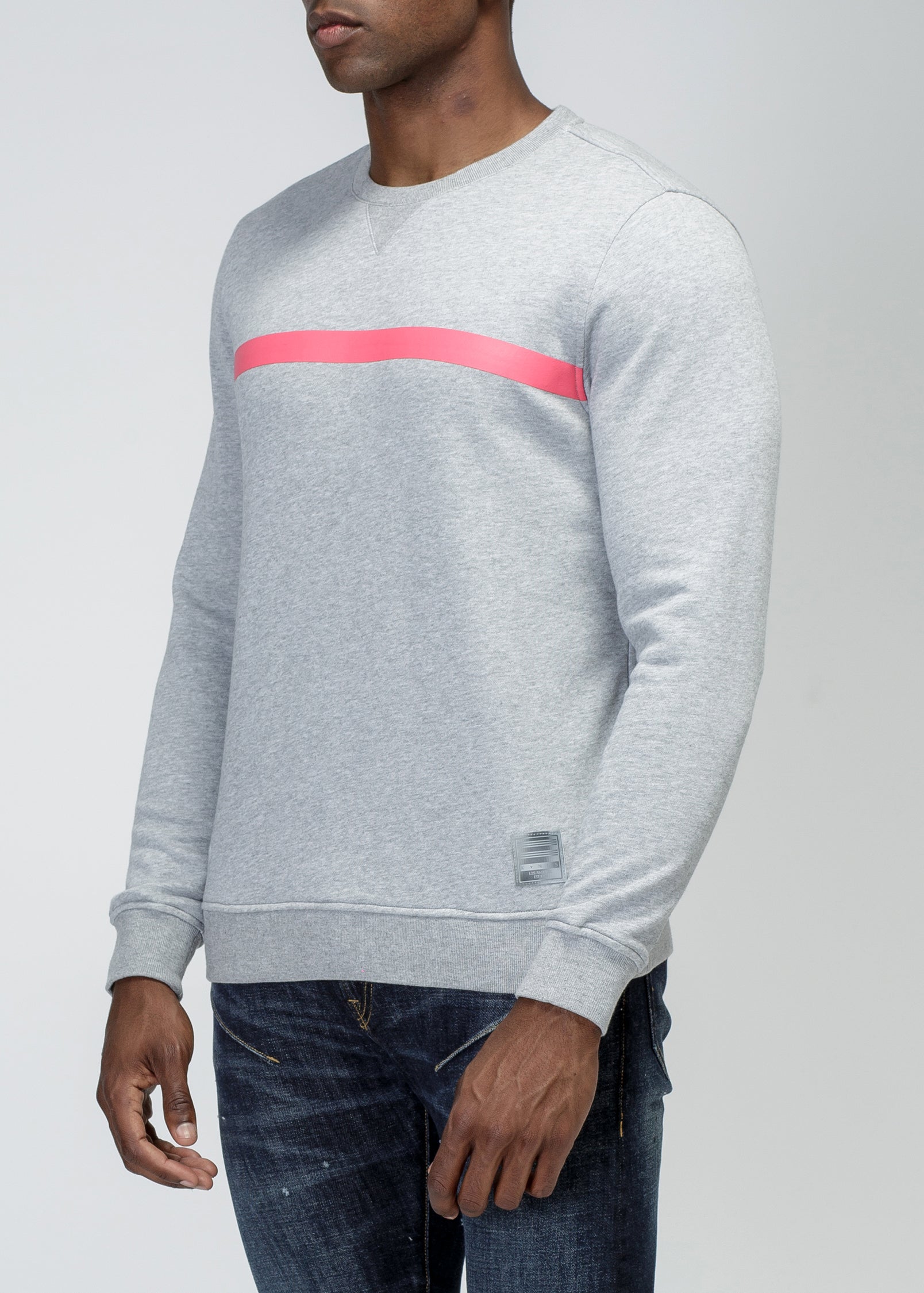 French terry crewneck sweatshirt featuring stripe prints on the front and back.