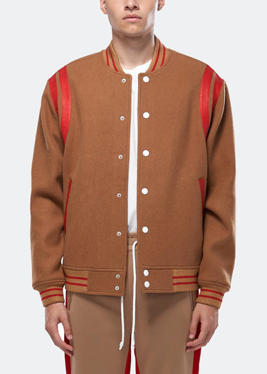 Konus Men's Wool Blend Varsity Jacket in Camel by Shop at Konus