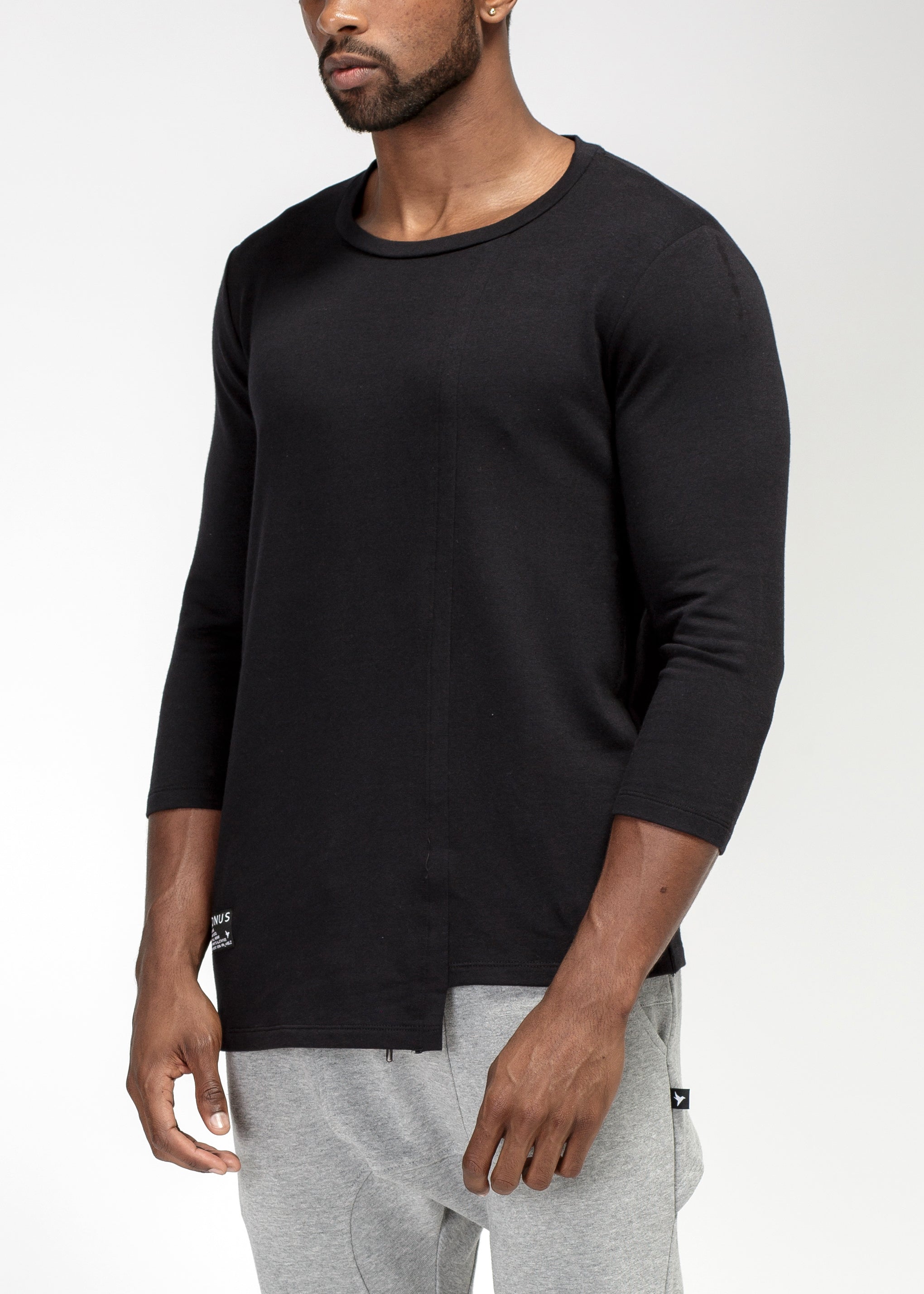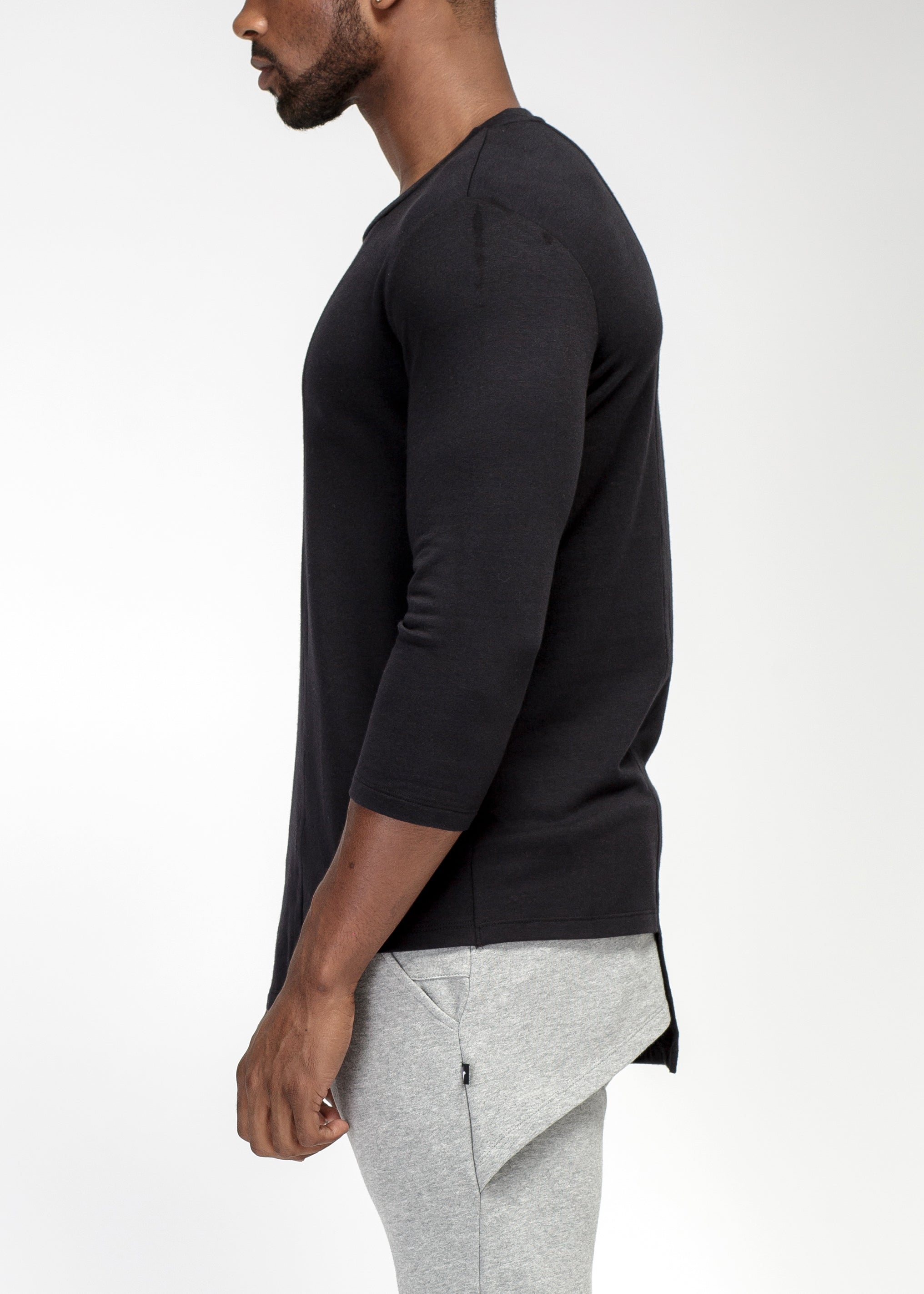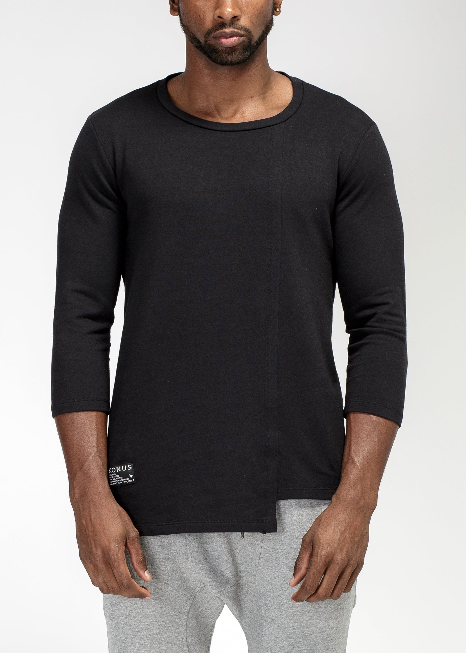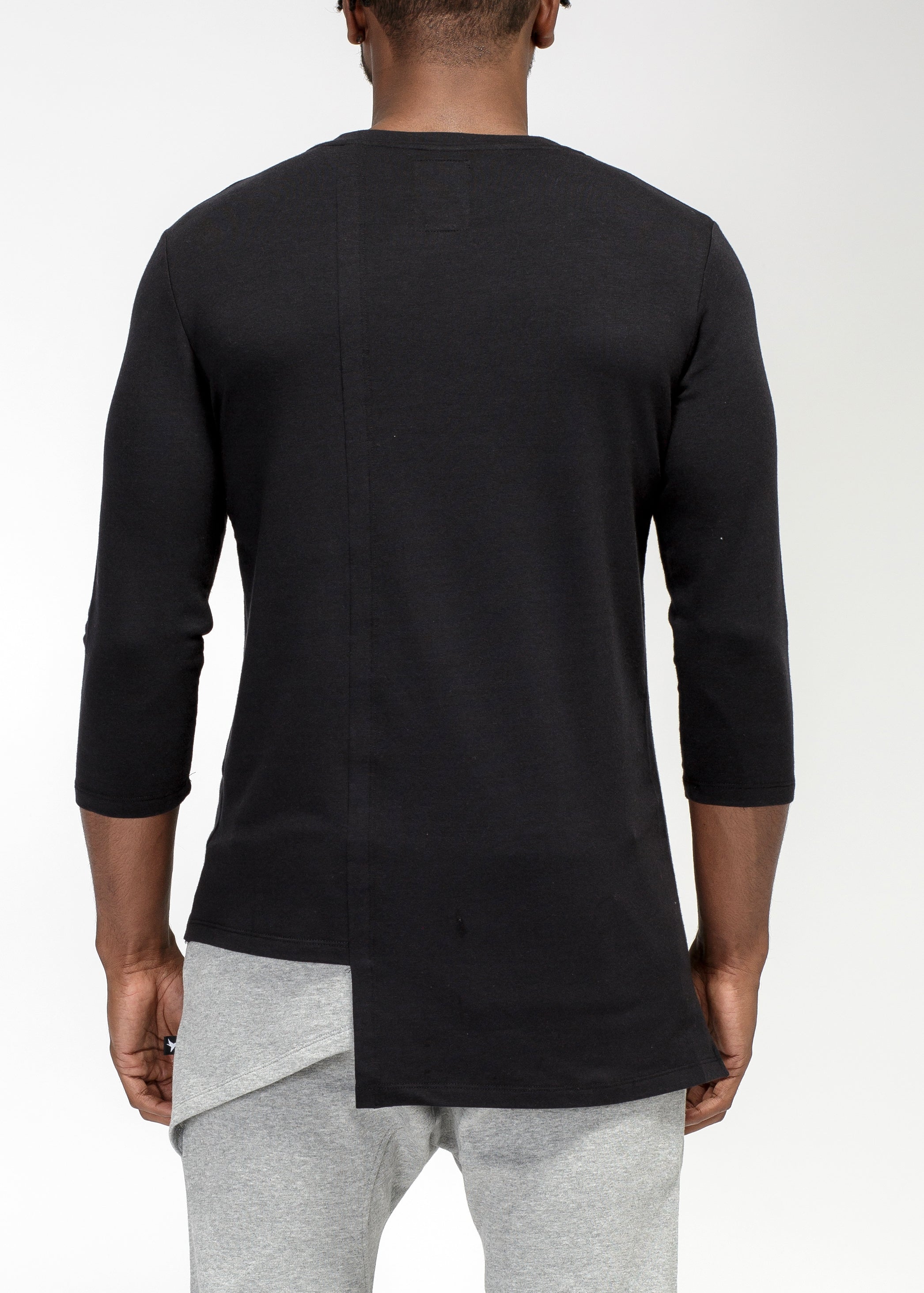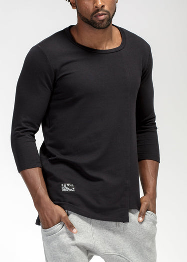 Men's 3/4 Sleeve Tee with Uneven Hem in Black by Shop at Konus