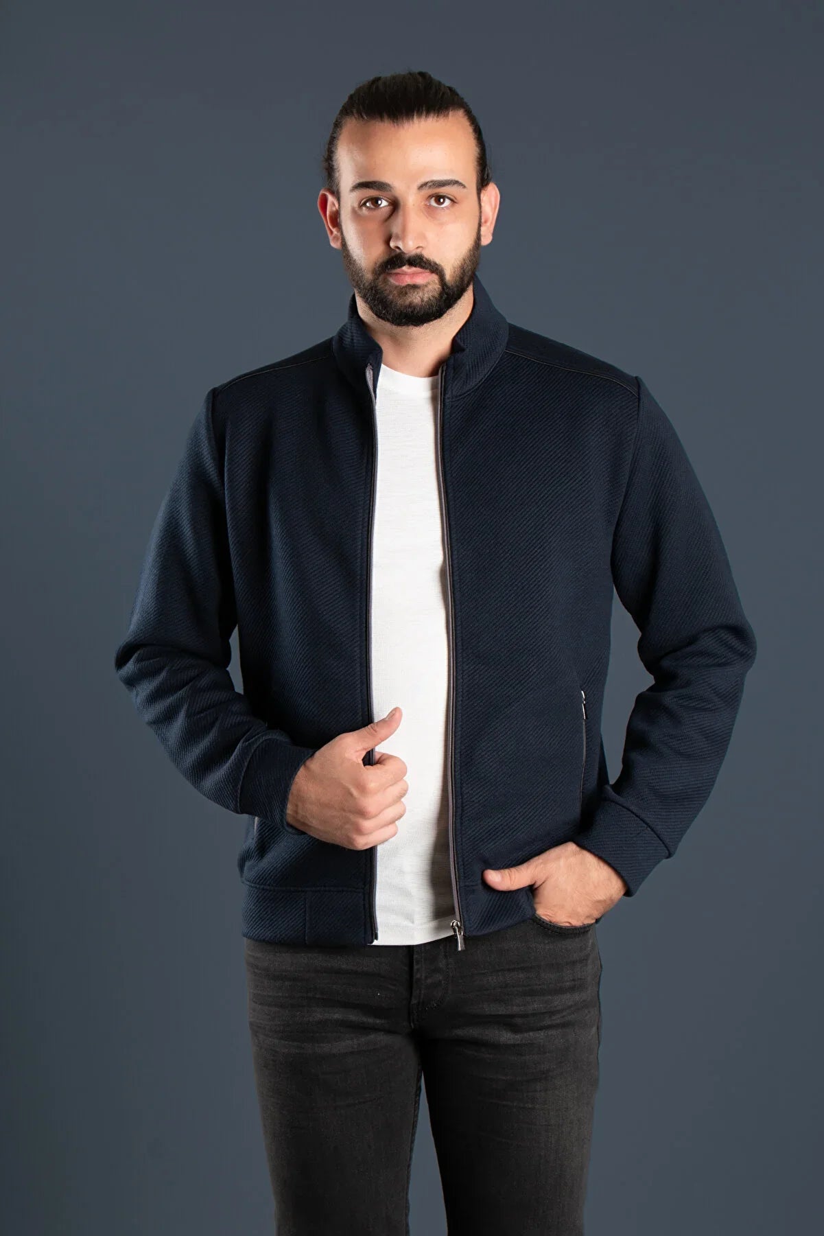 - This jacket features a slim fit design made of a blend of polyester fabrics, specifically designed for casual or daily wear.