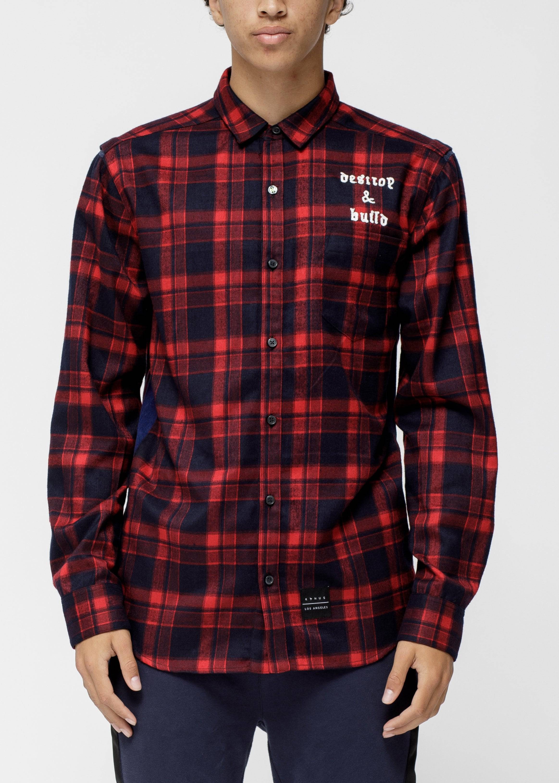 Men's Side Panel Flannel Shirt In Red by Shop at Konus