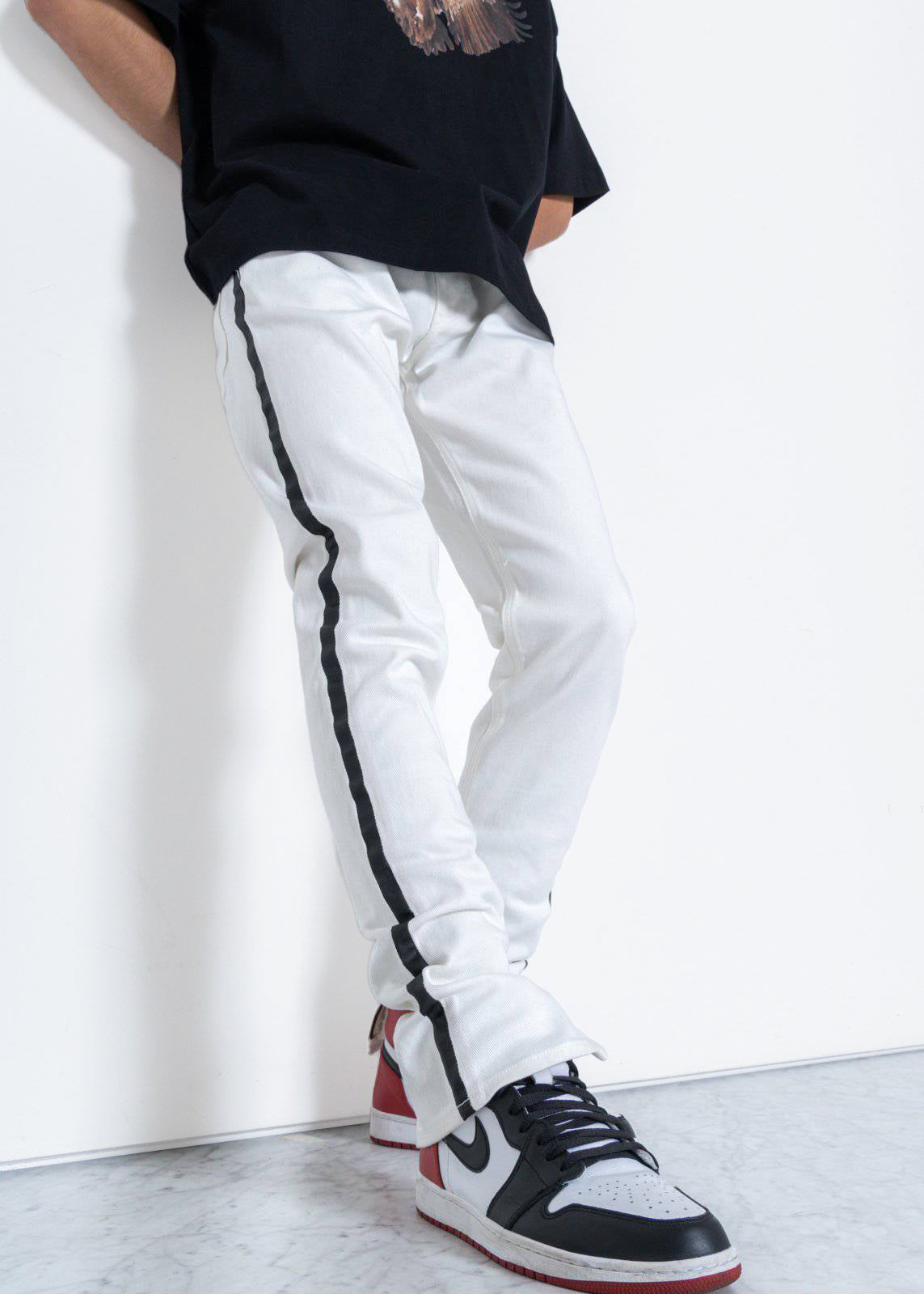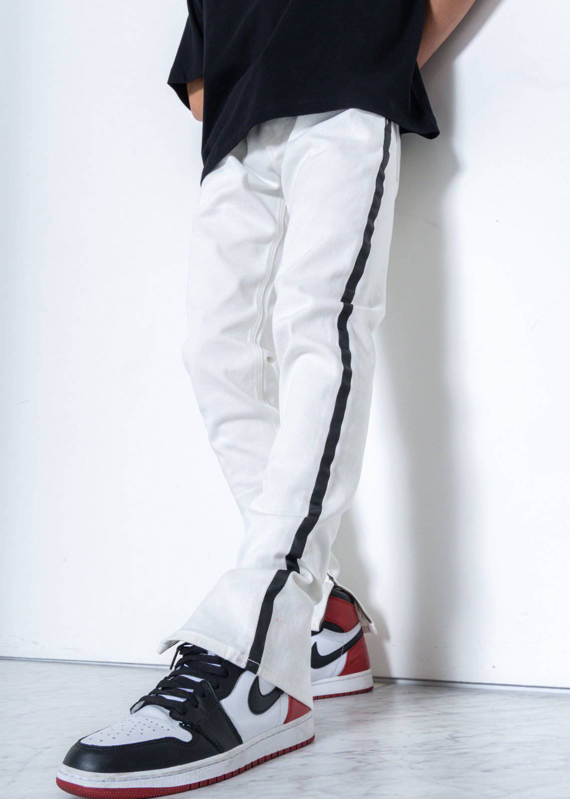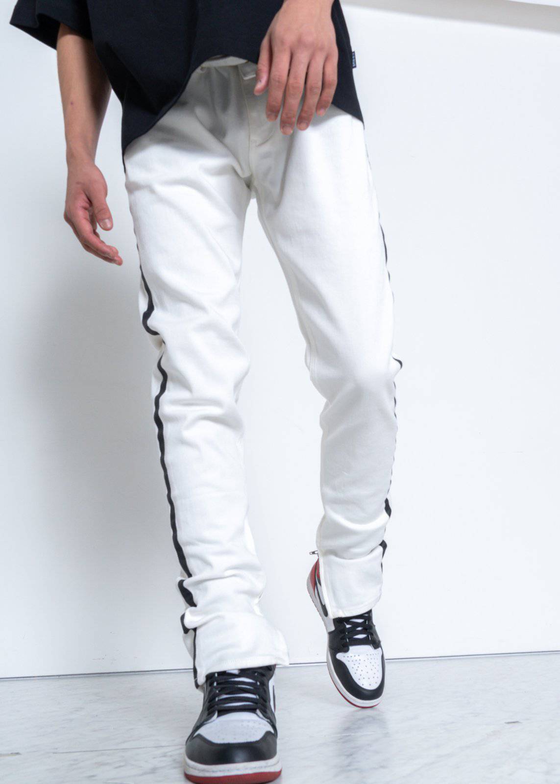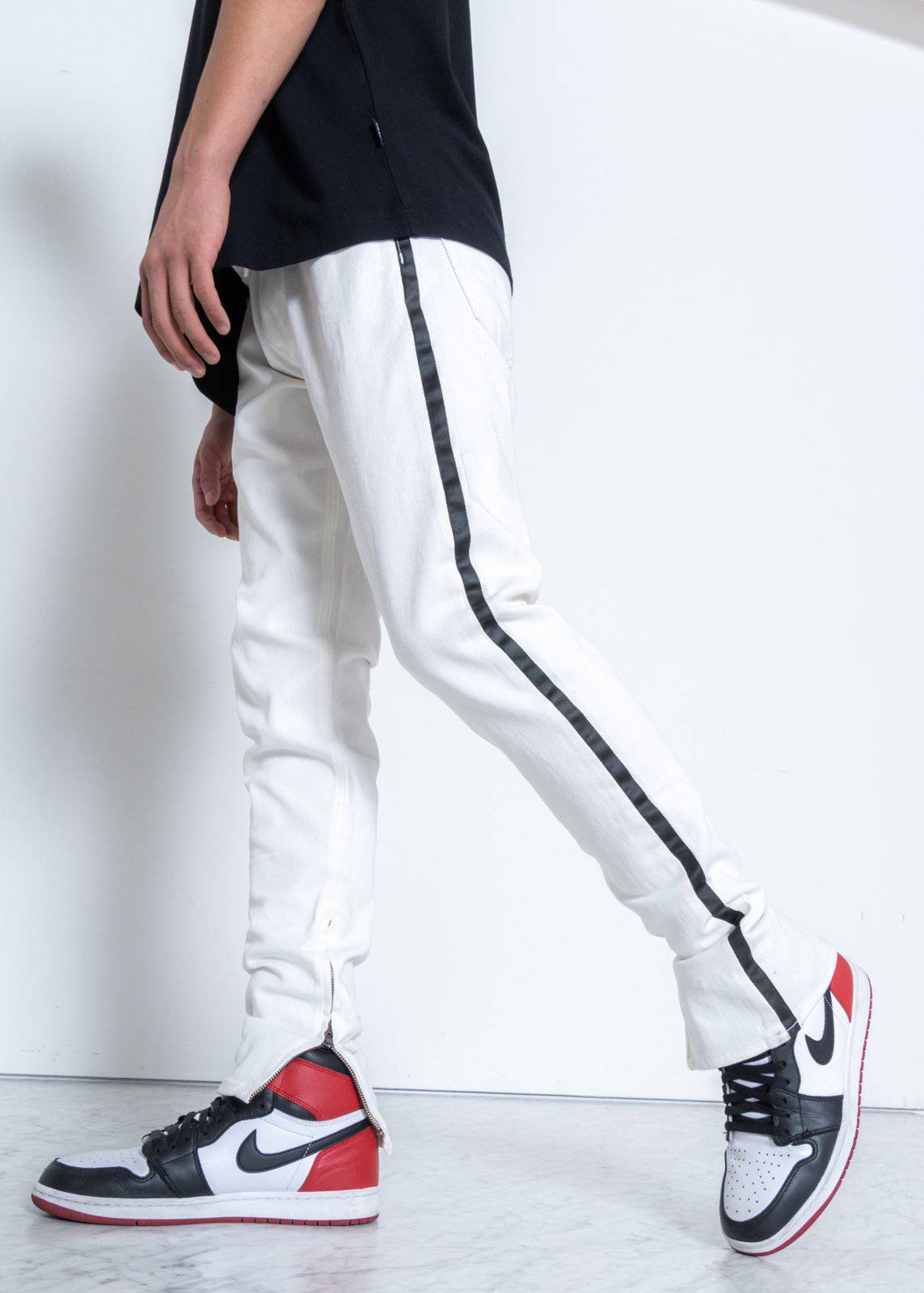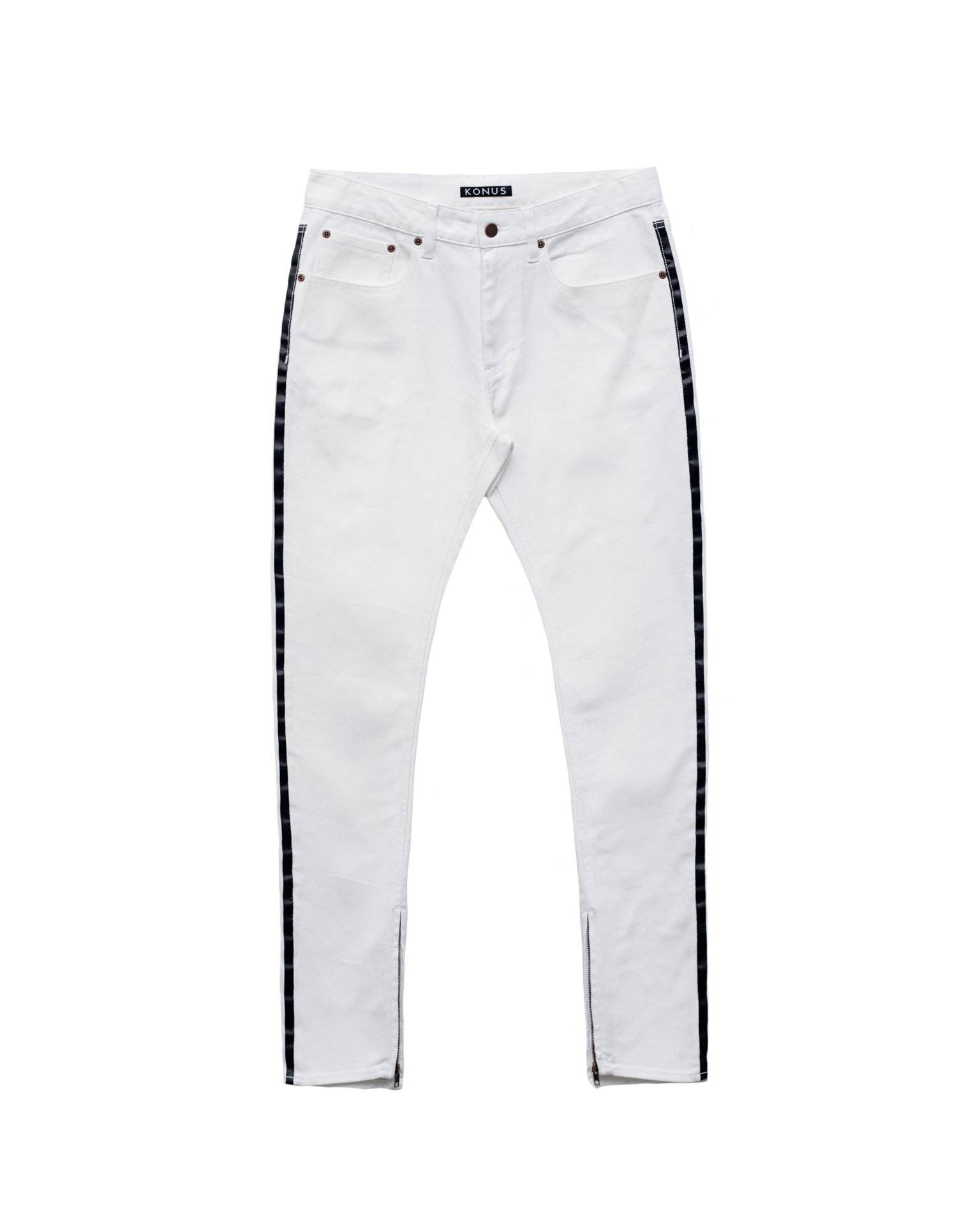 Men's Track Zip Skinny Fit Denim in White by Shop at Konus