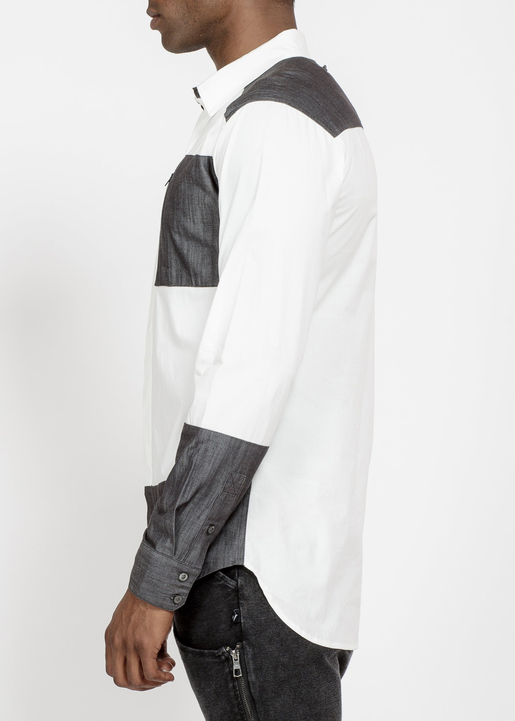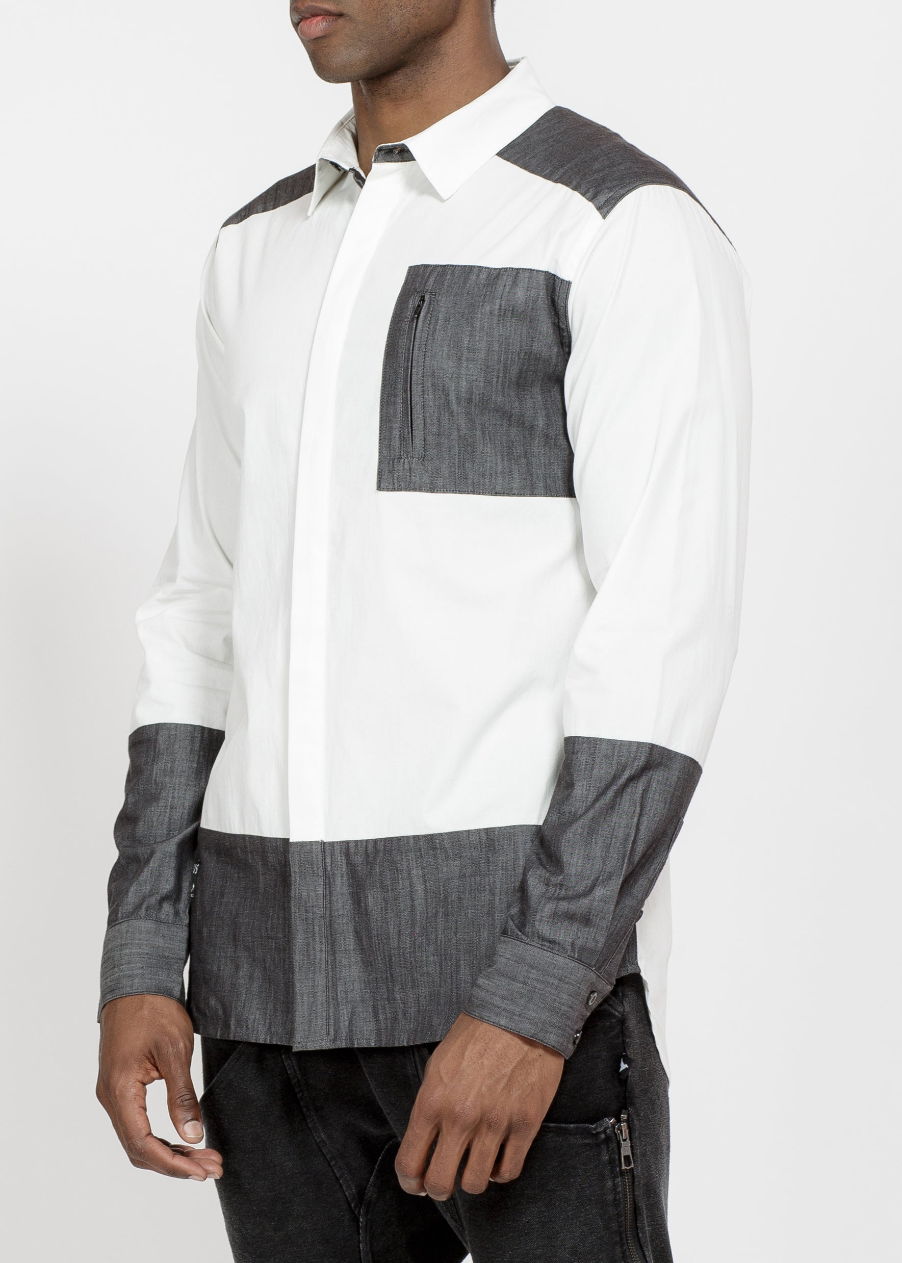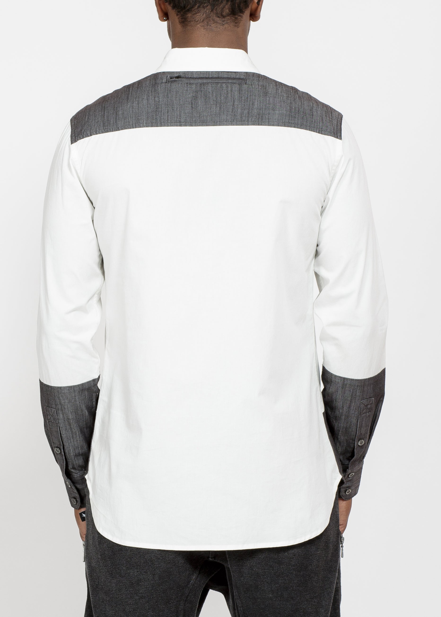 Men's Zip Pocket Button Up in White Grey by Shop at Konus