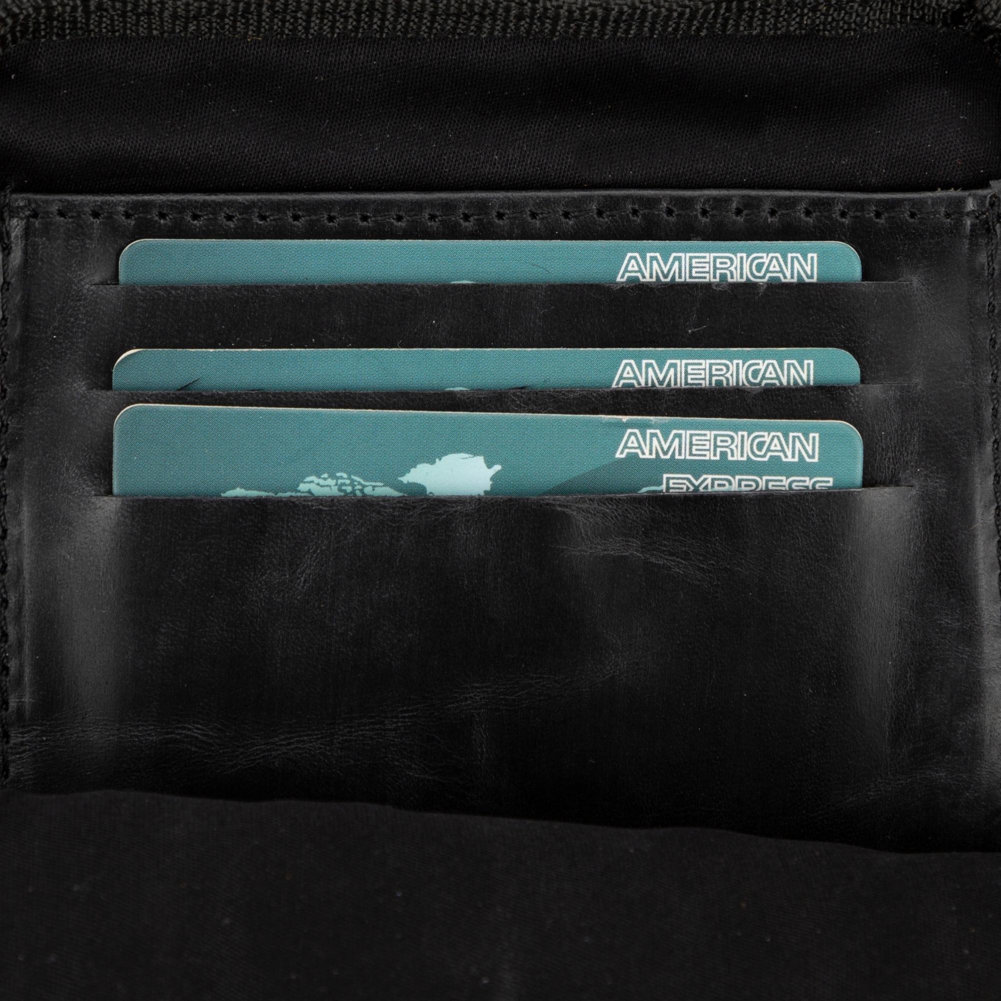 - SMART DESIGN: There are two zipped compartments and one mechanical compartment. The central compartment has a cash pocket, three card holders, and three card slots.