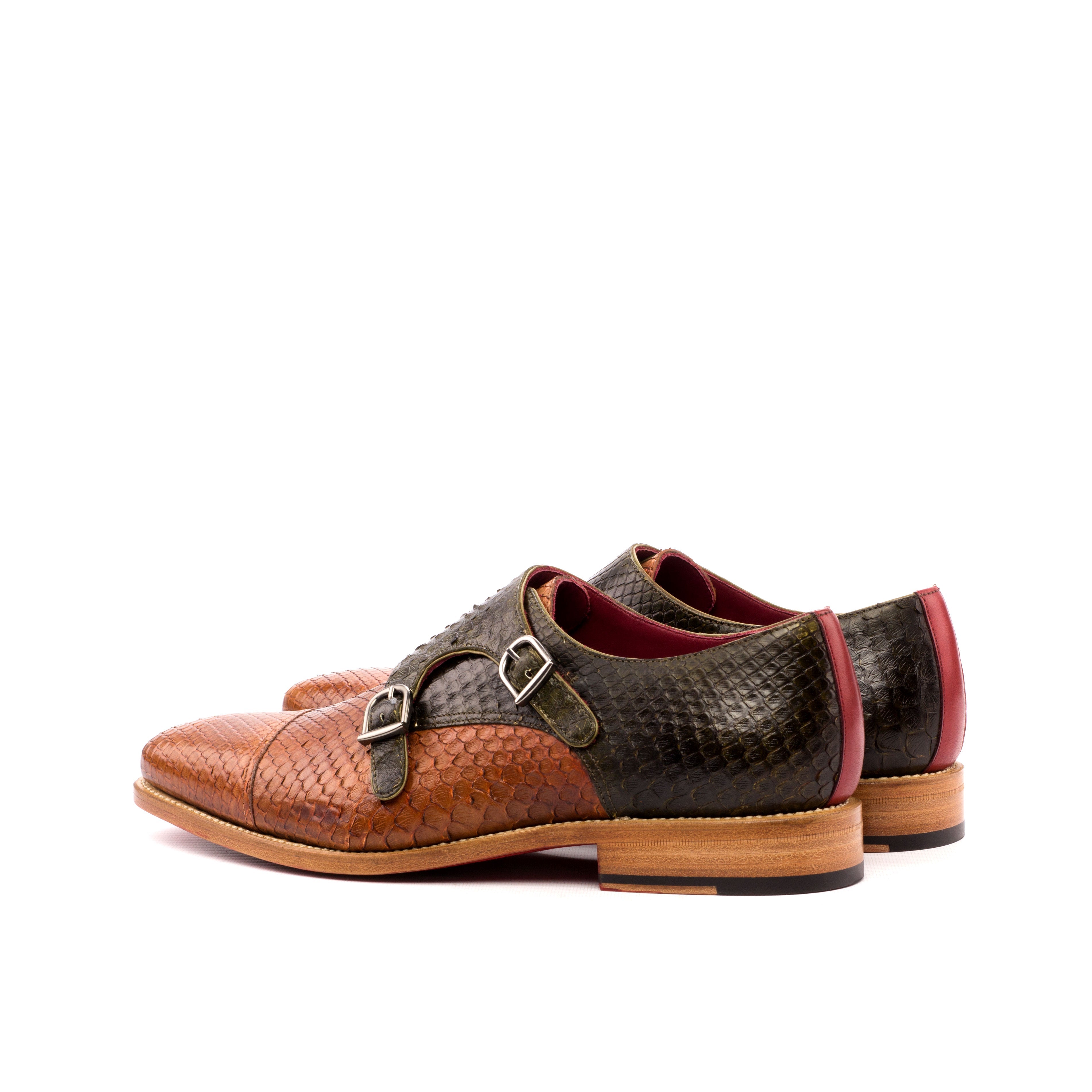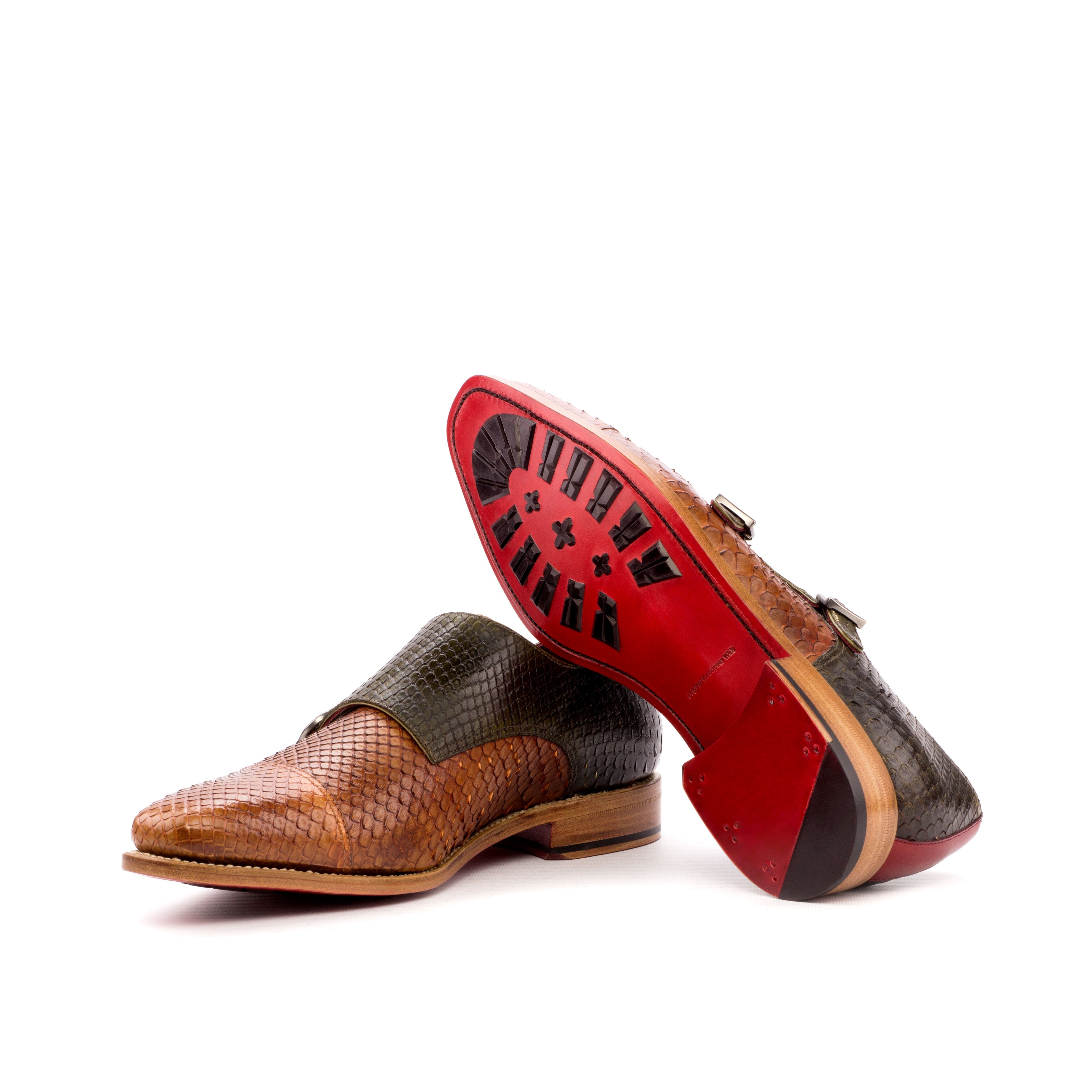 Materials: red painted calf + cognac exotic python + olive exotic python