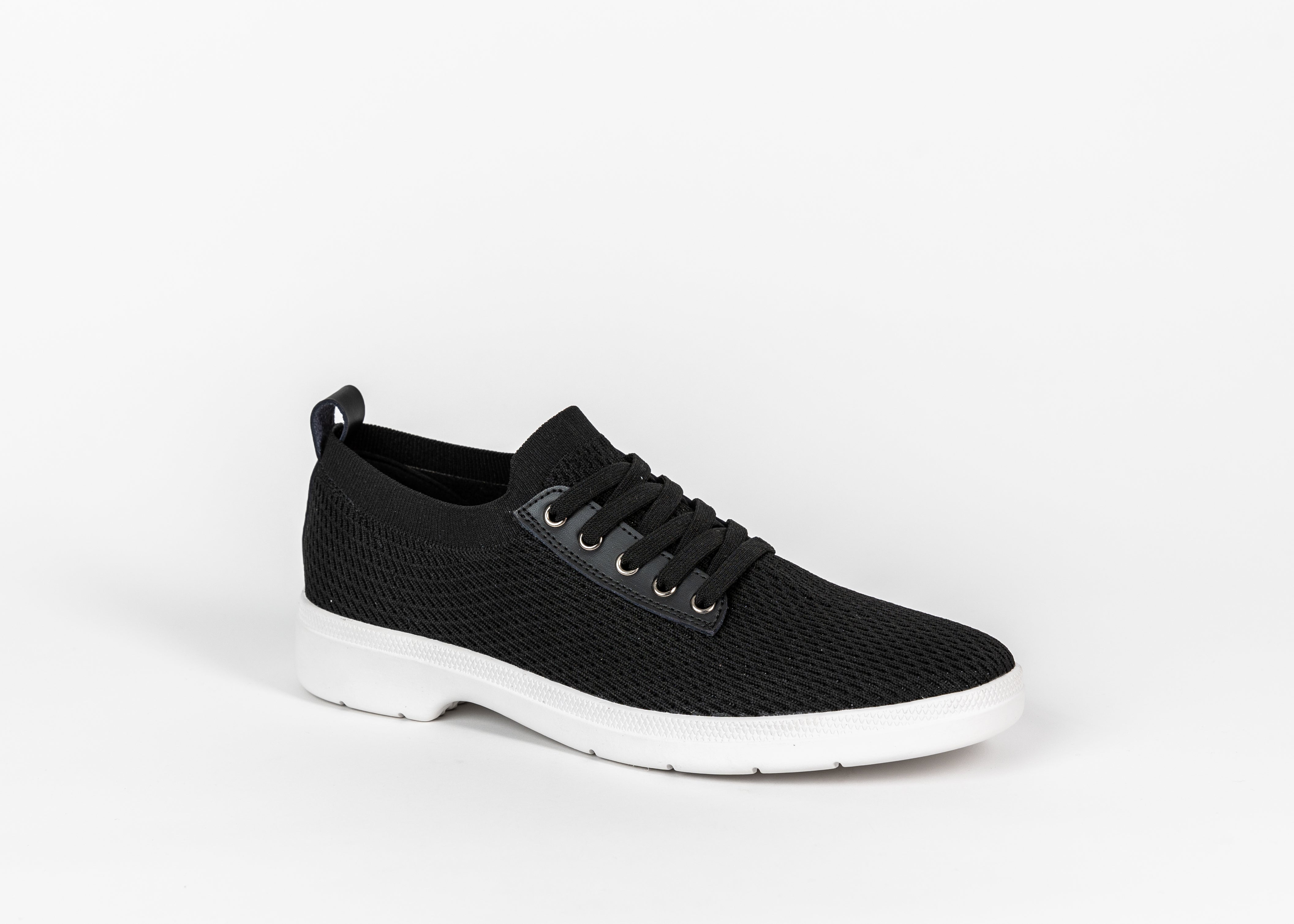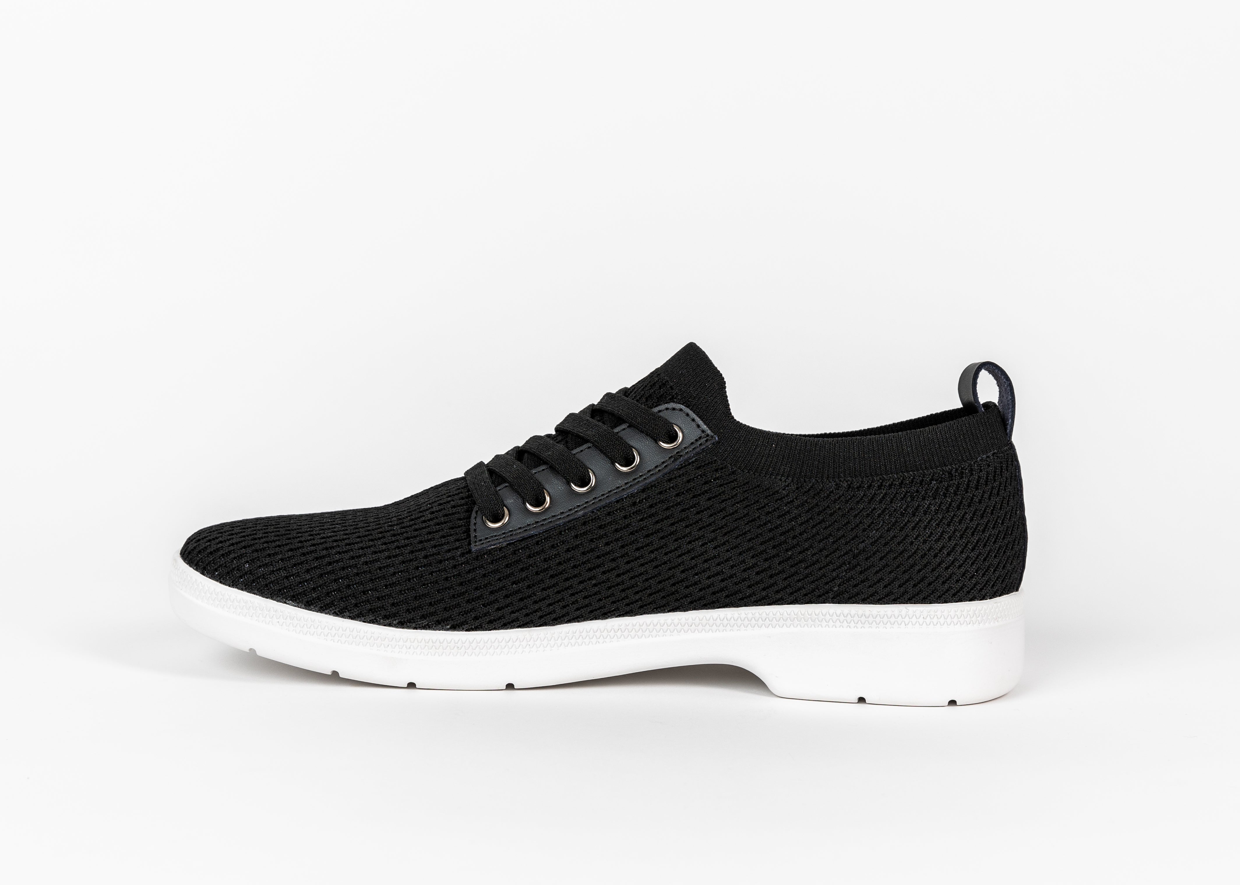 Low Top Sneaker; A hybrid low top sneaker built for maximum comfort and sporty sophistication. Built on top of the signature notch heeled, all-rubber sneaker outsole, sits a fly knit upper with stretch laces and a leather lace stay.