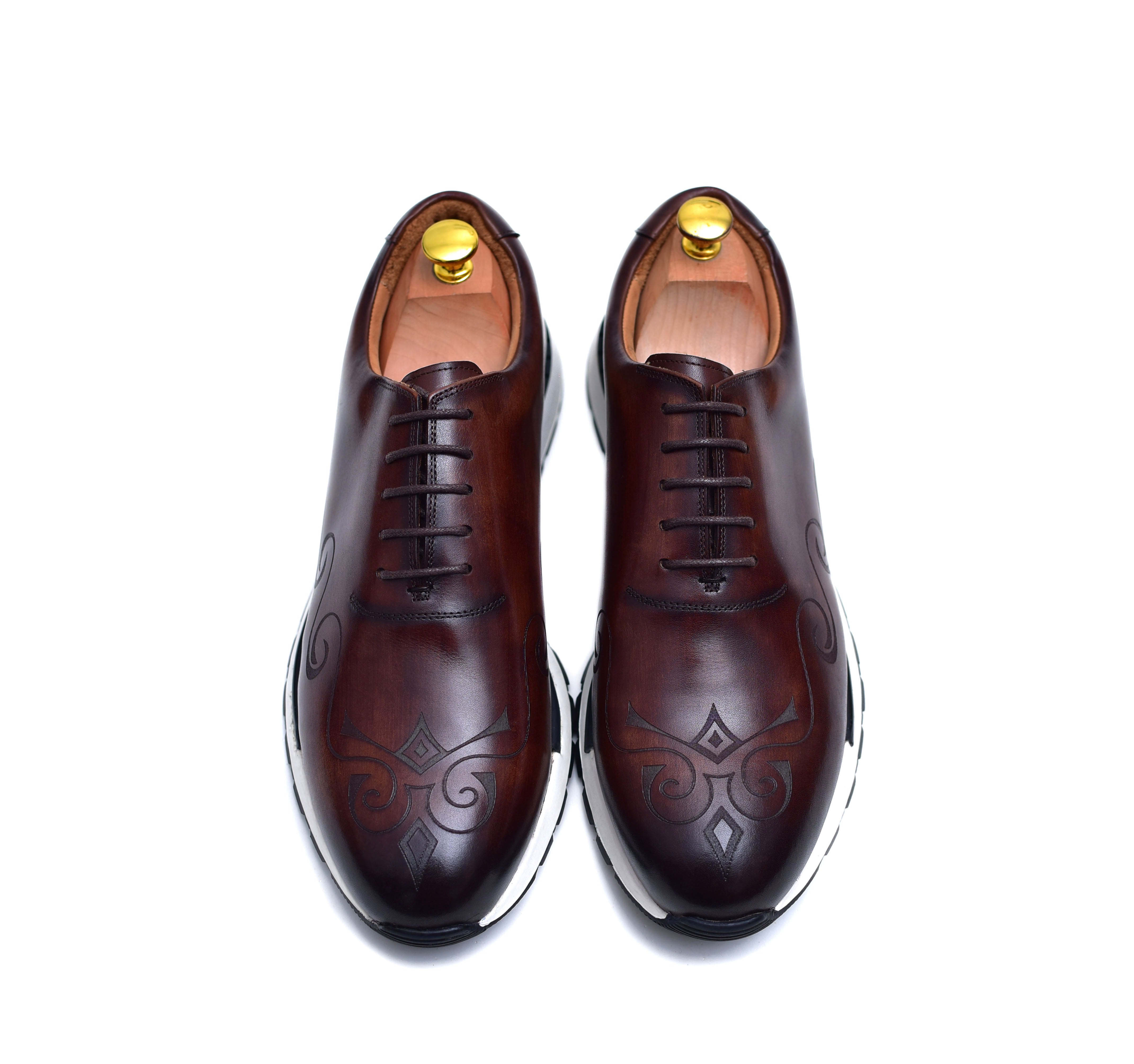 Meet Archie leather sneakers are symphony of style and comfort that resonates with every step. Crafted in premium brown calf leather with engraving details on front, with these leather sneakers fashion meets functionality, and each stride becomes a statement.