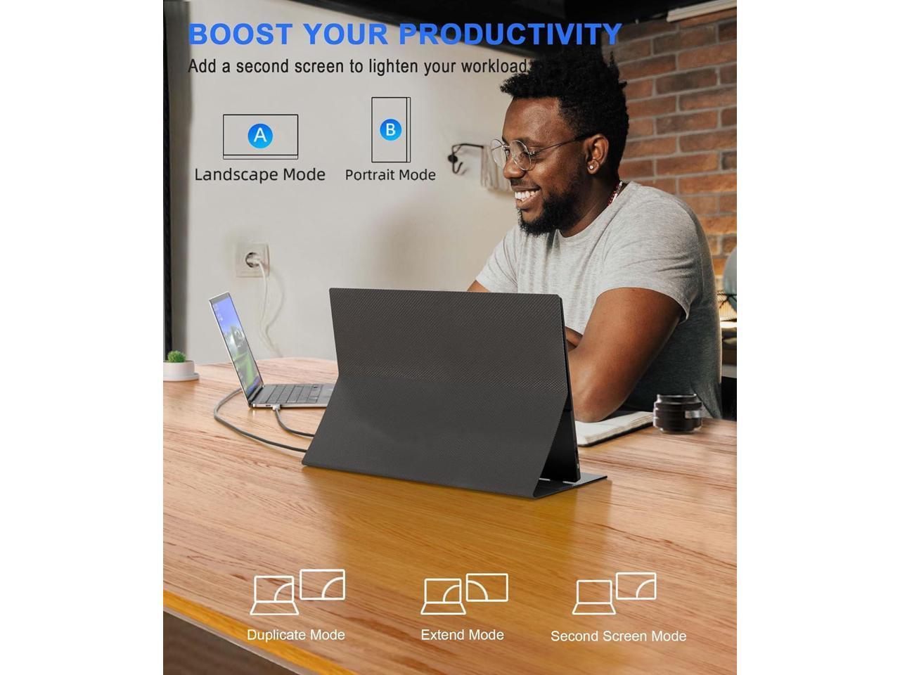Travel light and work smart with the REHISK portable monitor, your ideal travel companion.