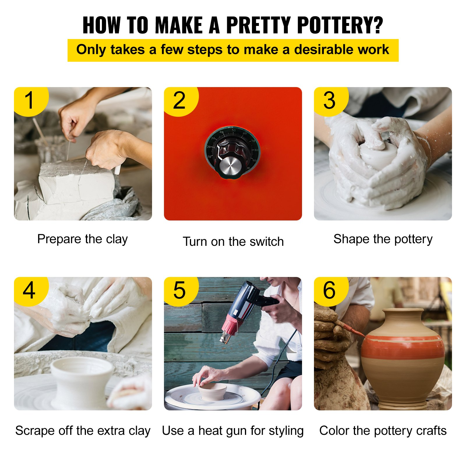 PRODUCT DESCRIPTION VEVOR Pottery Wheel 25cm Pottery Forming Machine 350W Electric Pottery Wheel DIY Clay Tool with Tray for Ceramic Work Ceramics Clay (25cm)