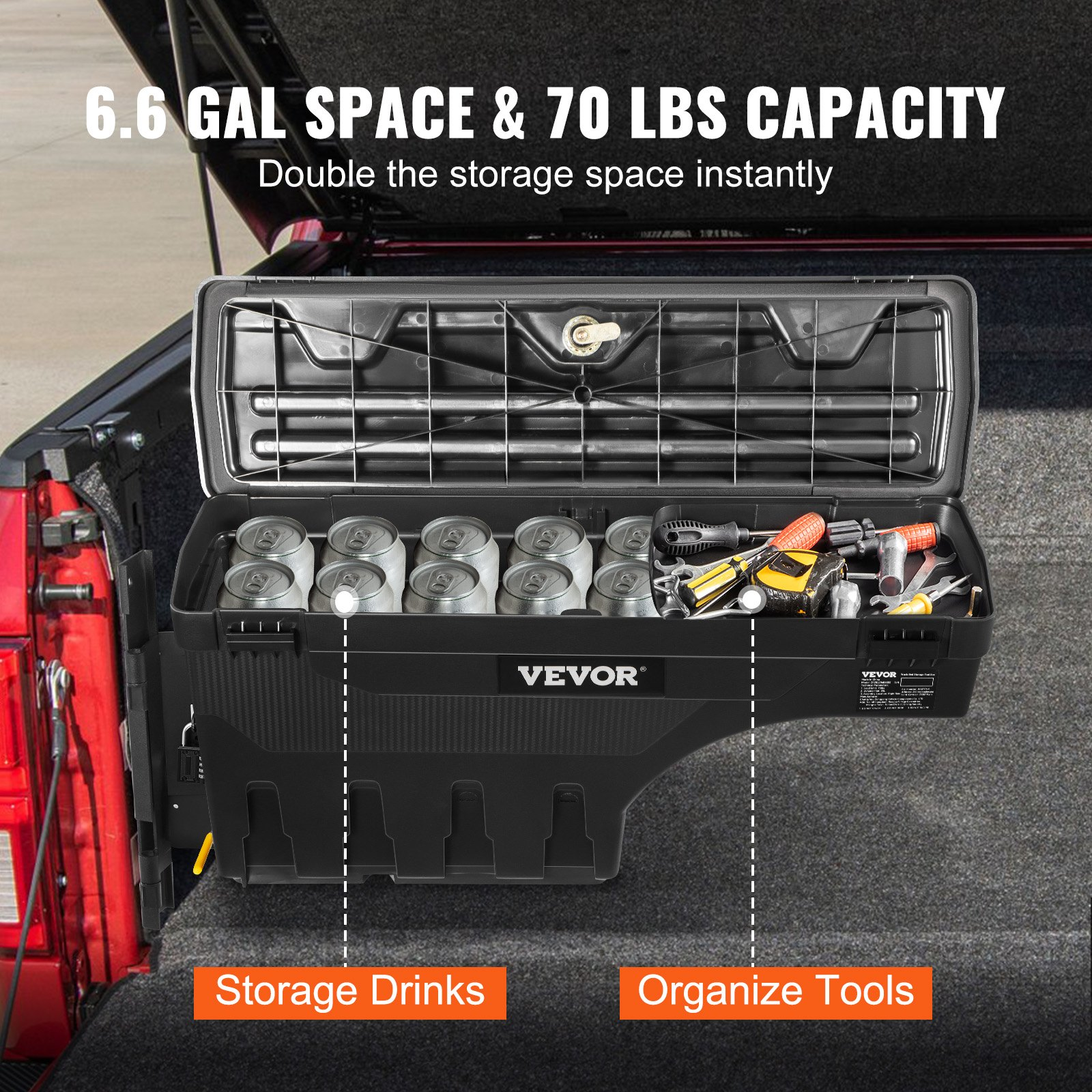 (FINAL PRICES ARE LOWER ON OUR SITE!) VEVOR Truck Bed Storage Box, Lockable Swing Case with Password Padlock, 6.6 Gal/25 L ABS Wheel Well Tool Box, Waterproof and Durable, Compatible with Ford F-150 2015-2021, Drivers Side