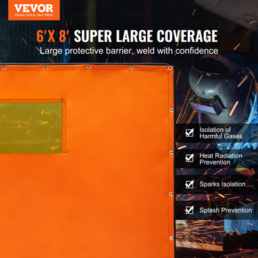PRODUCT DESCRIPTION VEVOR Welding Screen with Frame, 6' x 8' Welding Curtain Screens, Flame-Resistant Vinyl Welding Protection Screen with 4 Swivel Wheels (2 Lockable) & Transparent Window for Workshop/Industrial, Yellow