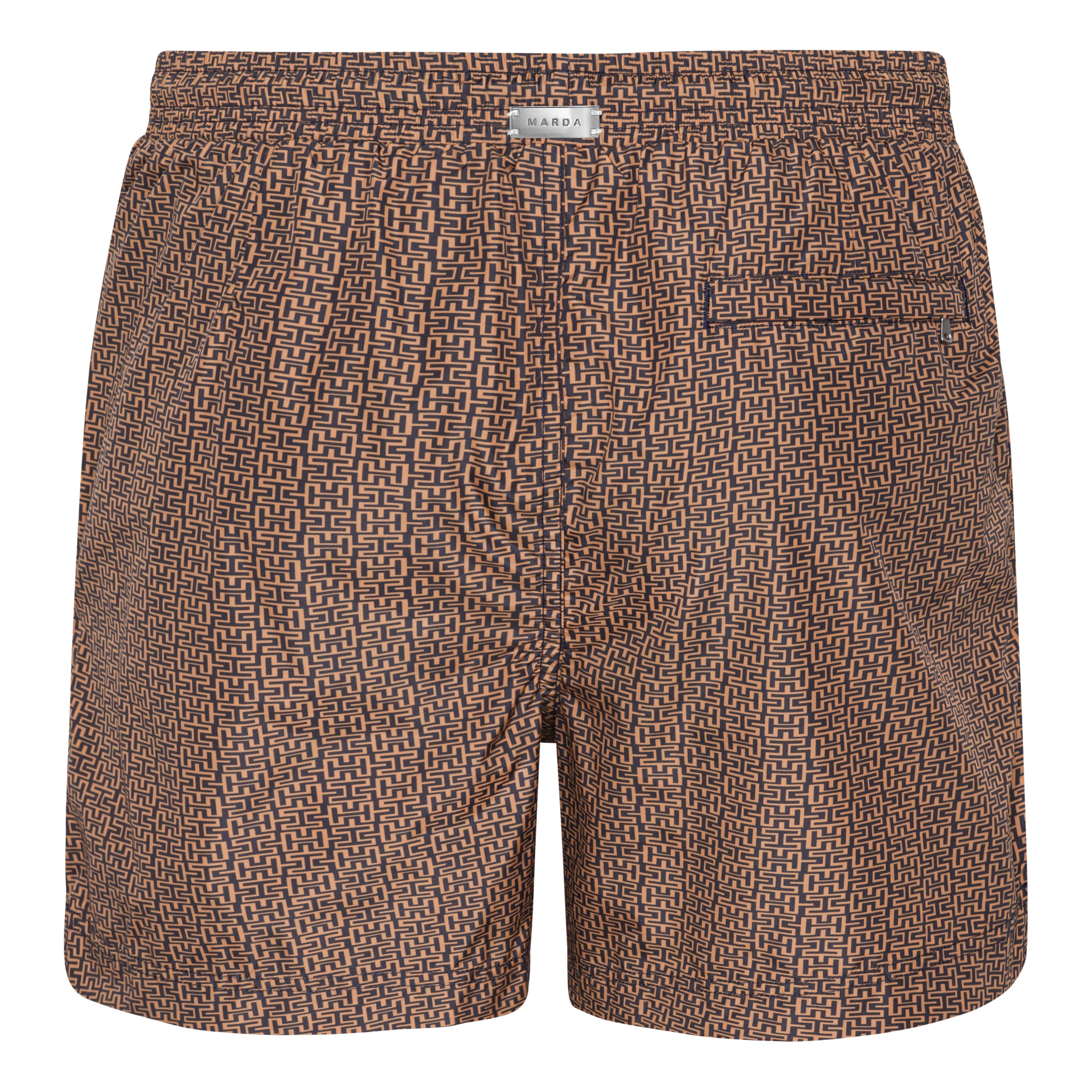 Marda swimwear is custom made from a premium Japanese fabric that is light, soft and waterresistant, taking just a few minutes to dry post-swim. Confidently understated, yet highly functional. They are fitted with back pocket zippers, chrome stainless steel cord stoppers and complete with our signature recycled metal rubber waistband logo.