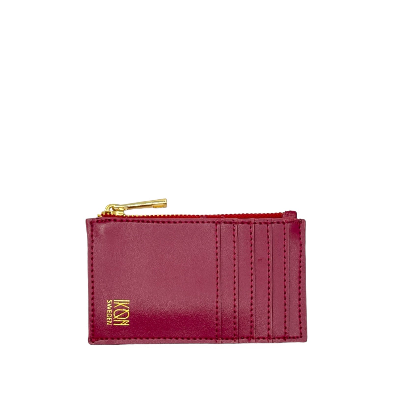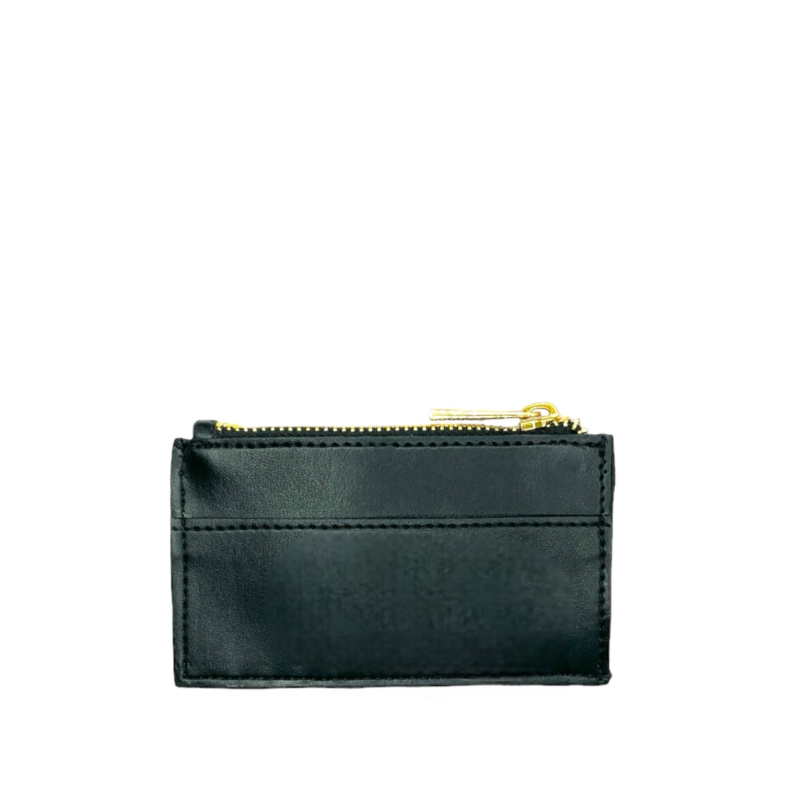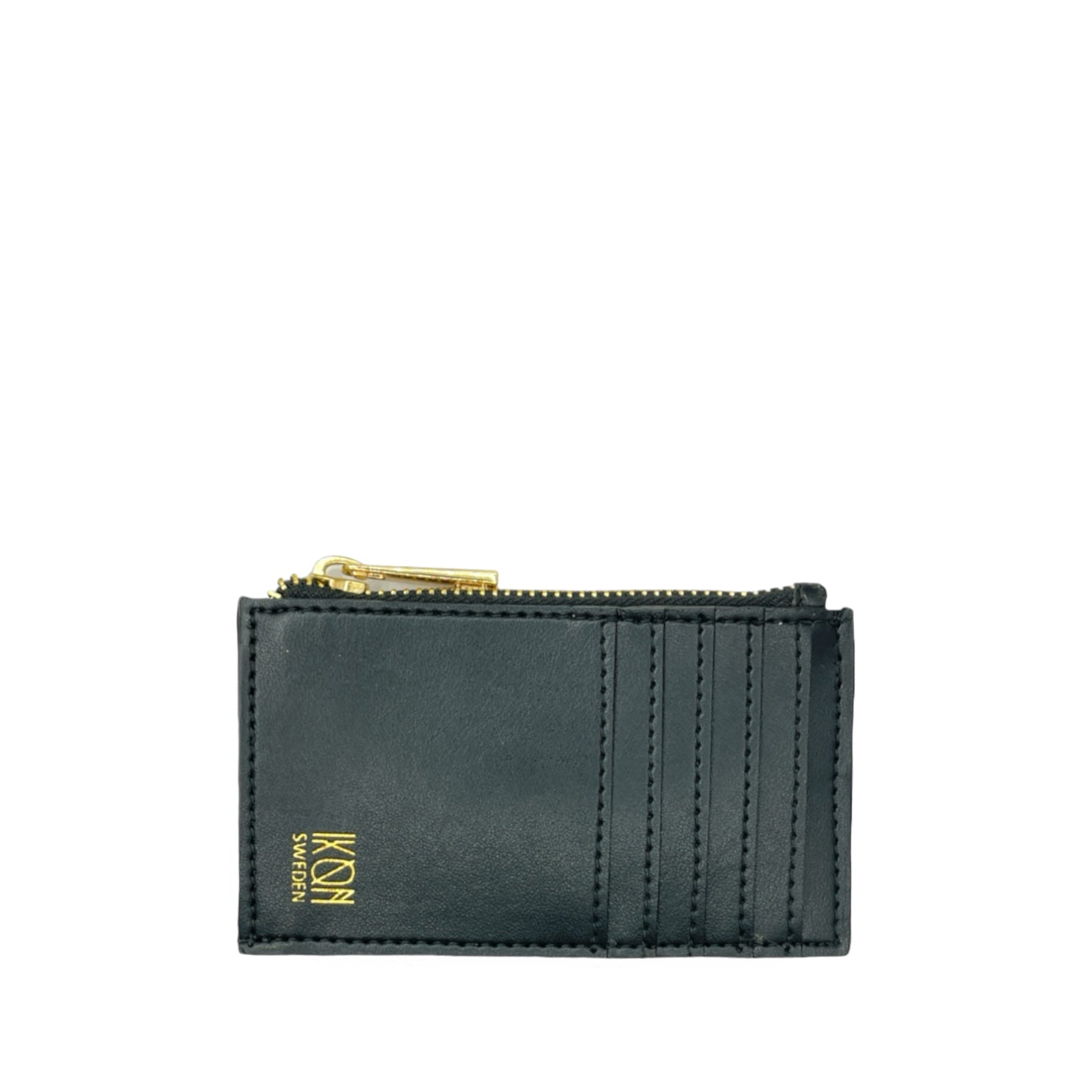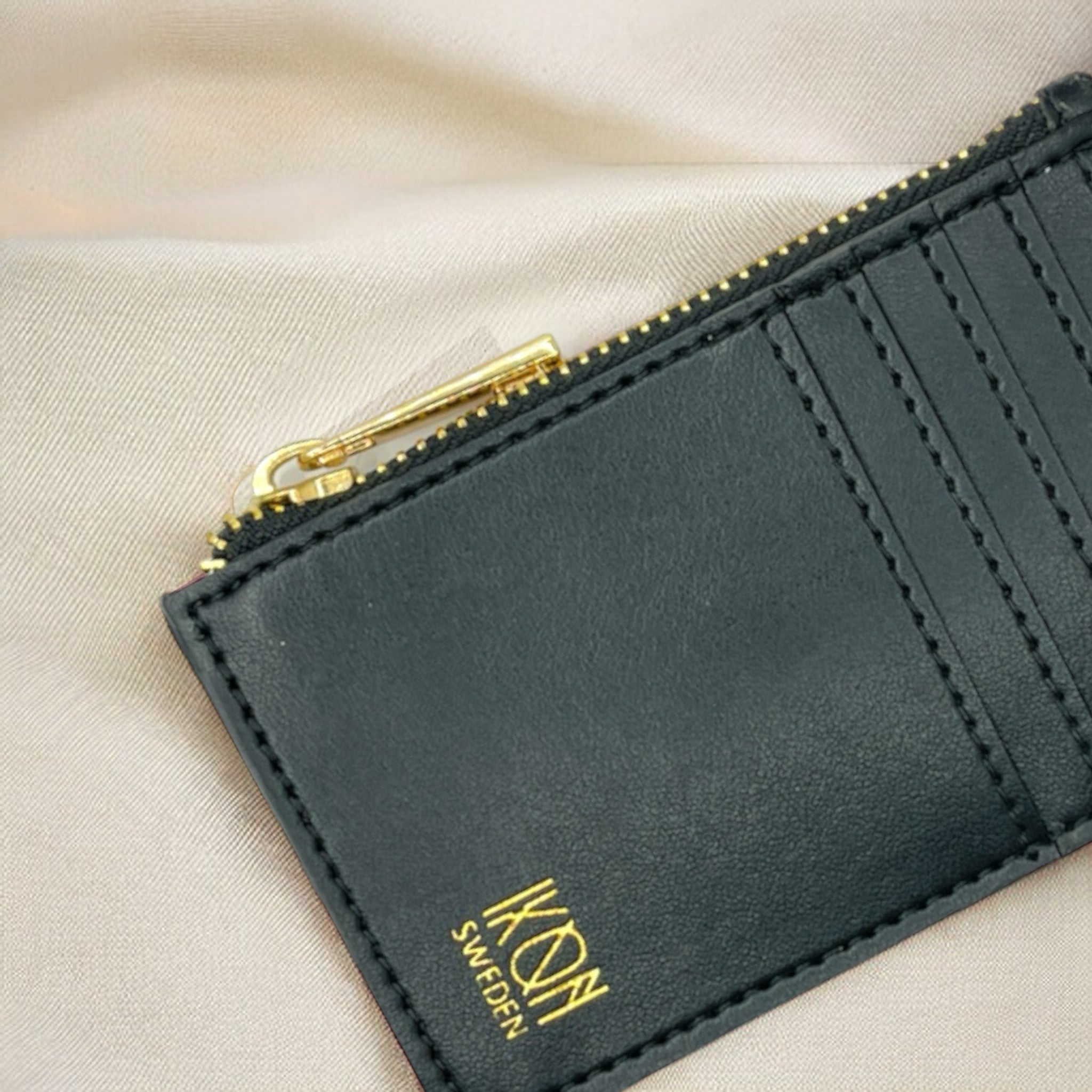 Luxurious vegan card case made with plant-based Apple leather and a high finish metal runner and YKK Zipper.