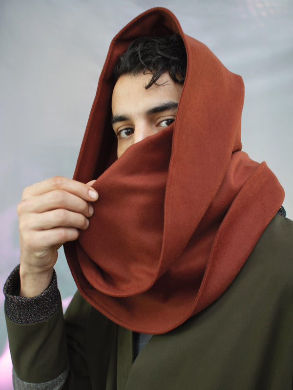 A warm, unique scarf with unlimited possibilities. It closes with magnets. Can be worn as a shawl or as a hood depending on your wishes.