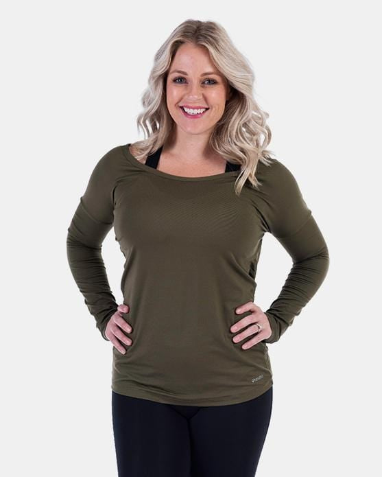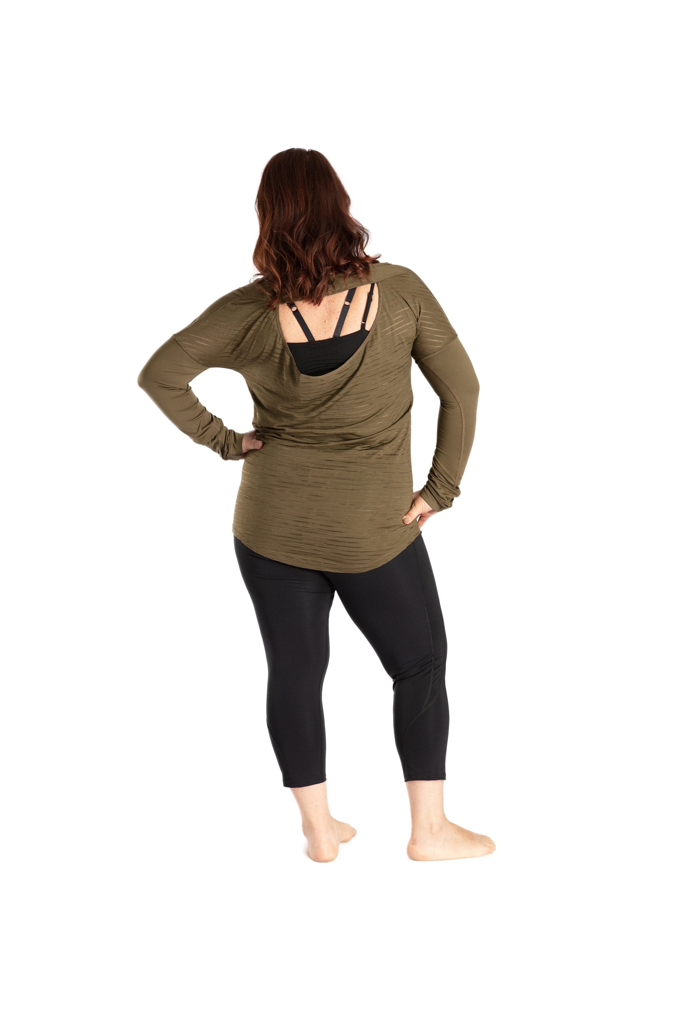 Soft and breathable, the Handful Peek-a-Breeze Long Sleeve tee is the perfect top to throw on before or after a workout. Cute open back design shows off any Handful bra.