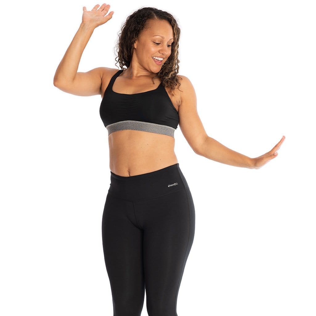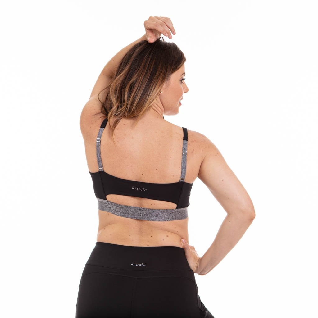 The Handful Now and Zen Bra is designed for comfort and flexibility. A comfortable wirefree convertible sports bra with adjustable straps. Includes one set of contoured removable pads. Moisture-wicking lining with soft, quick-dry spandex shell. It is ideal for yoga, barre, and other moderate impact activities. Breathe in and zen out!