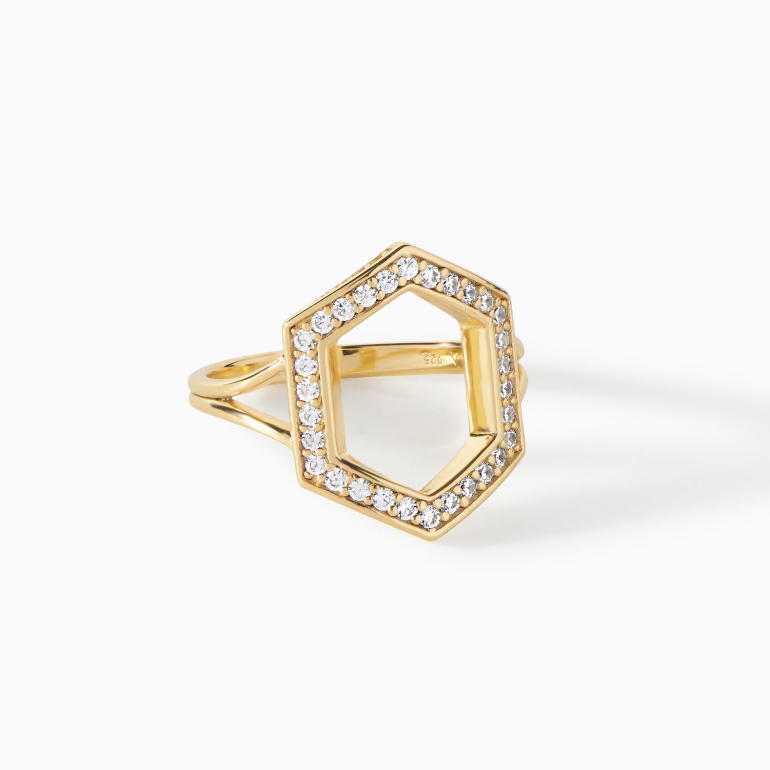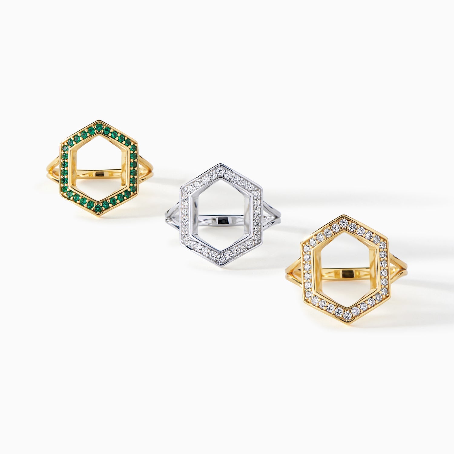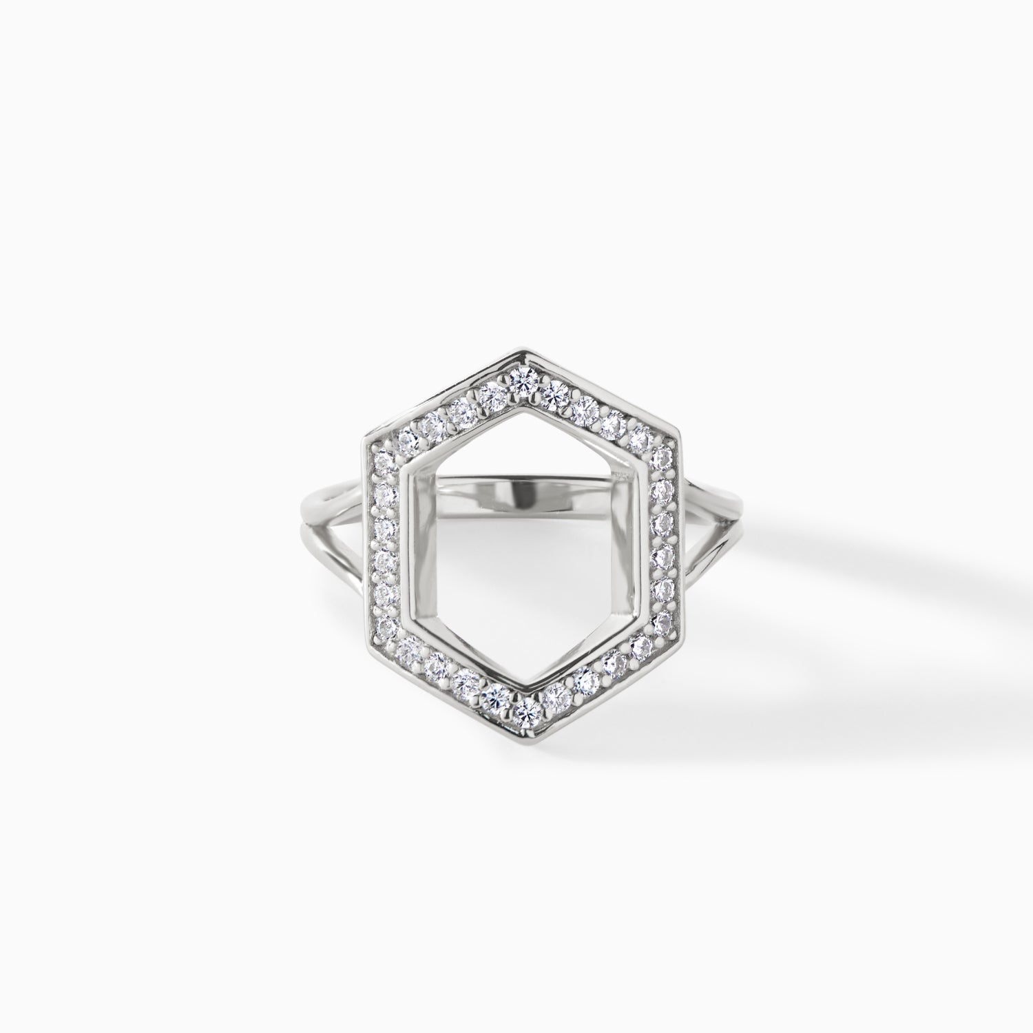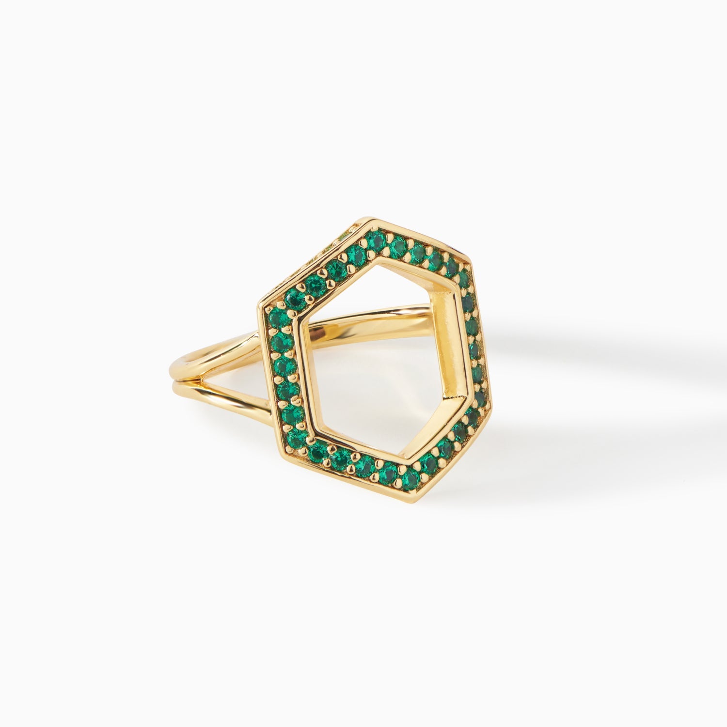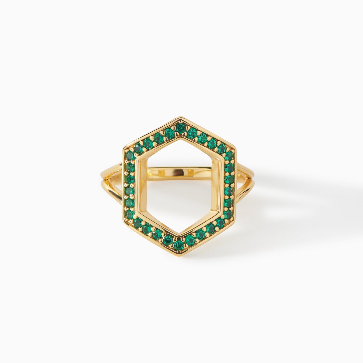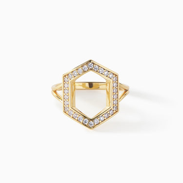 The Donna Ring is a geometric statement piece that brings a unique structure to your collection. It features a striking hexagon outline encrusted with sparkling stones that catch the light from every angle. The openwork design gives a lightweight yet impactful presence, perfect for adding a touch of architectural flair to your style. Whether you choose a vibrant green gemstone version or classic pavé detailing, the Donna Ring is an ideal accessory for those who love standout jewelry with an eye-catching finish.