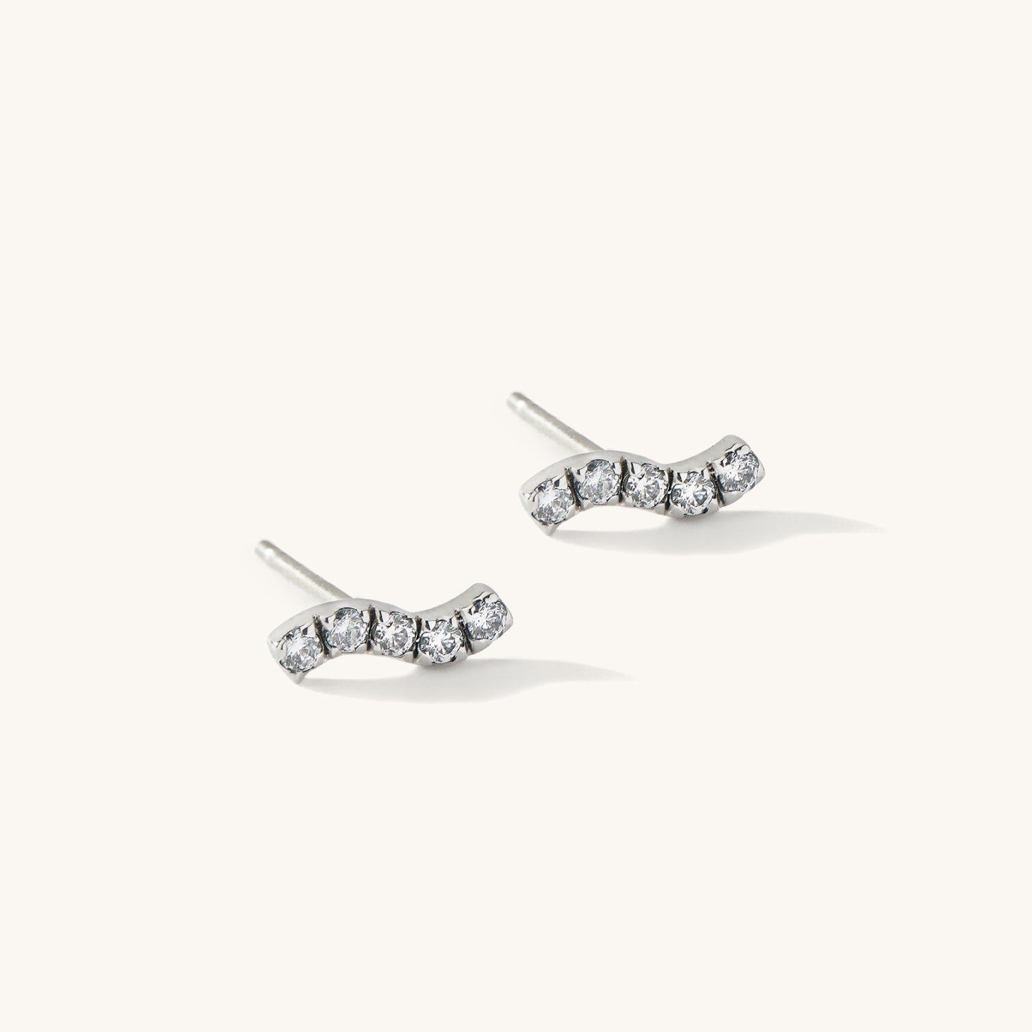 Inspired by the serene waves of your dream getaway, The Paradise studs feature a chic wave design with shimmering stones that catch the light just right.