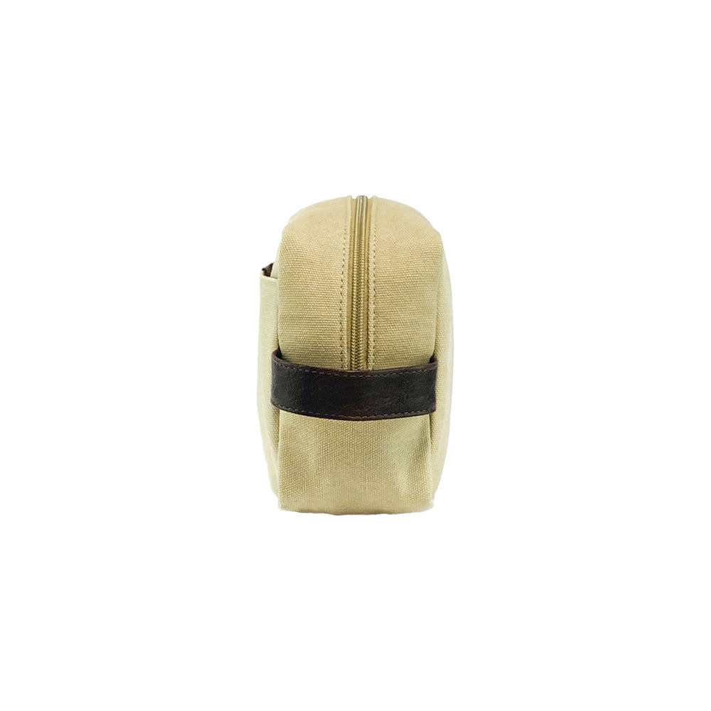K0014GB | Beauty Case in Canvas/Genuine full grain leather, milled. Color Rope/Dark Brown. Side handle. Zipper closure. Dimensions: 24 x 15 x 9 cm. Packaging: TNT bag