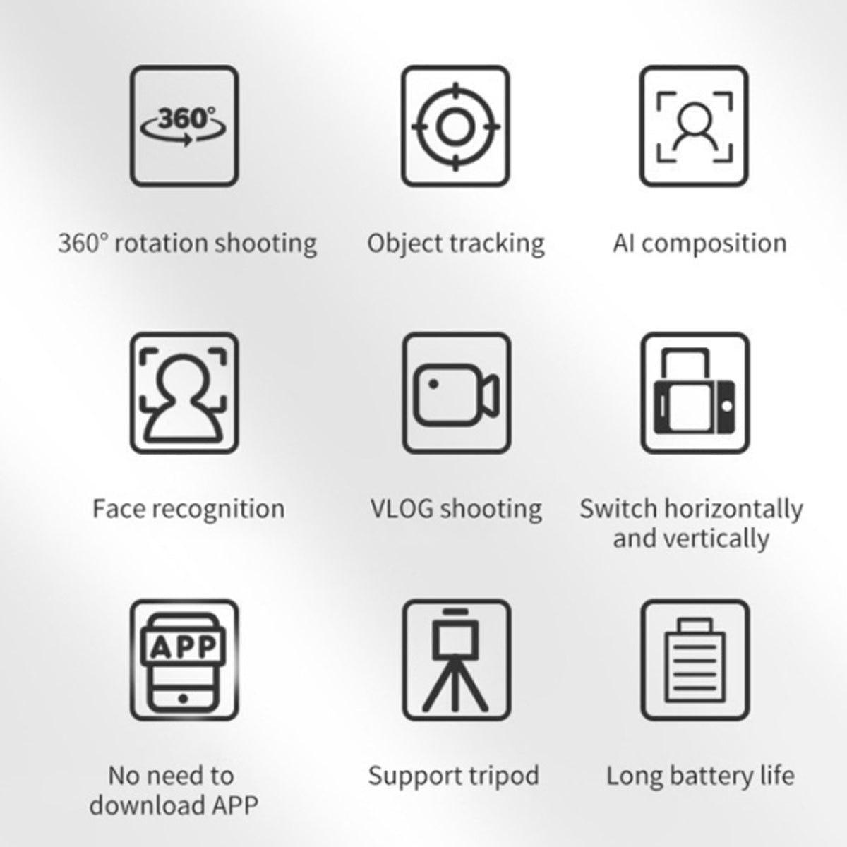 Equipped with a built-in AI(artificial intelligence) technology-based face recognition feature, as well as a 360 motion detector. This 3-in-1 animated videographer stand holds your mobile phone and lets you take videos and pictures totally hands-free. It follows your movements and always keeps you in the frame. You can control it up to 30 feet away via a remote control that can start and stop the action for you at any time.