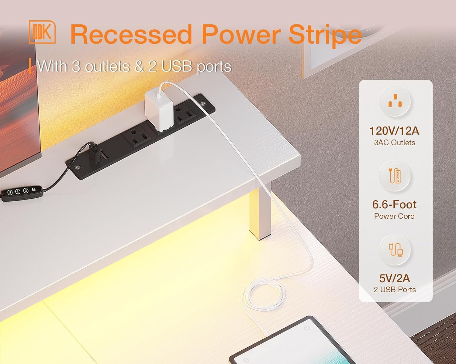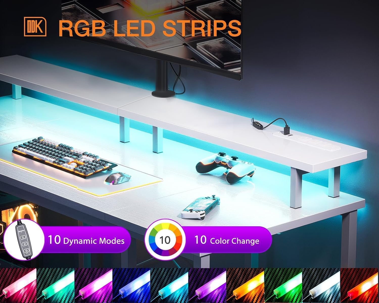 - Gaming Enviroment: Our desk features a full monitor stand accommodate two monitors or laptops, built-in LED lighting create strong gaming ambiance.