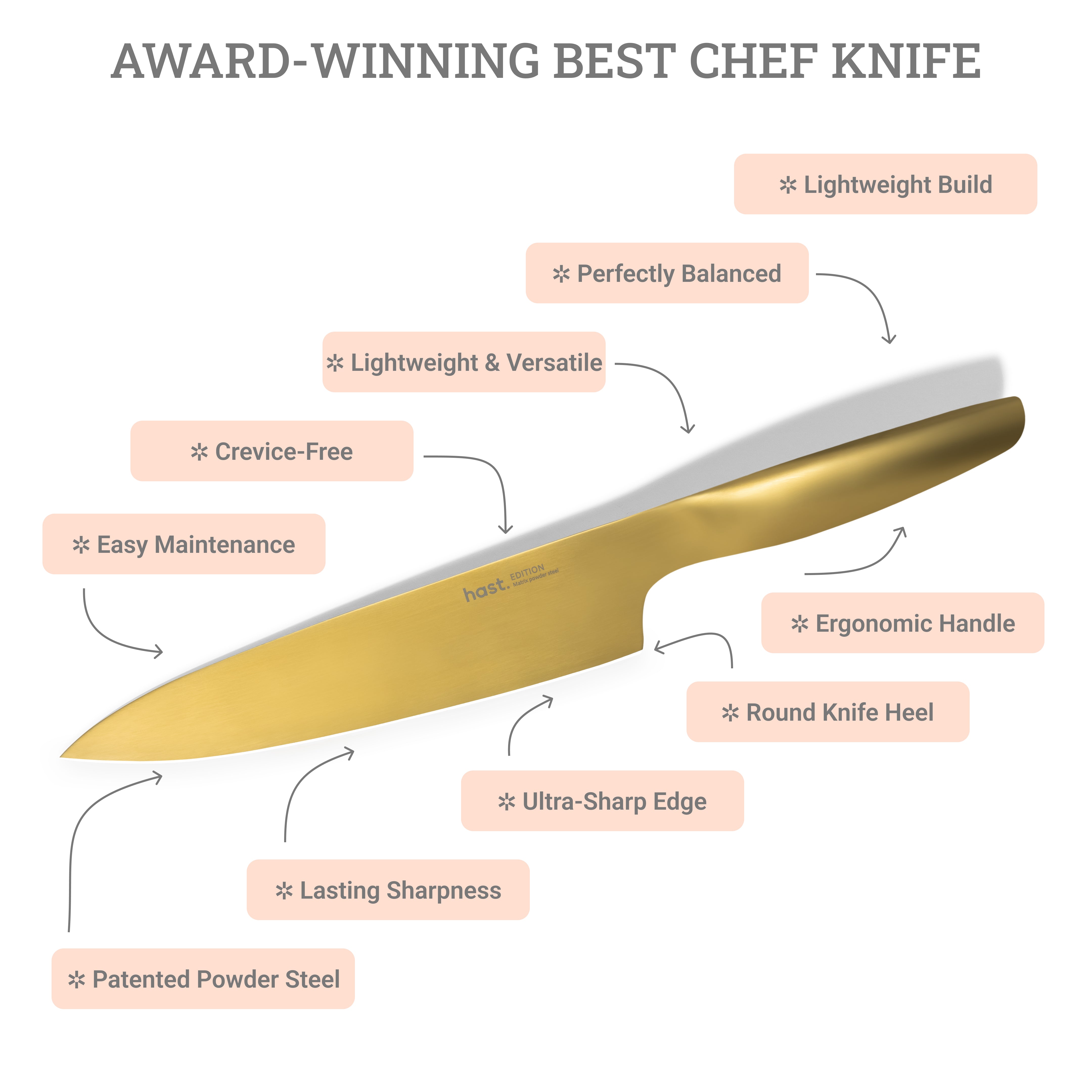 The Hast Edition Series 4 Piece Modern Knife Set gets your cooking well covered. This beautiful and ultra modern 4 piece knife set includes an all-purpose 8” chef’s knife, a 5.3” utility knife, a 3.5” paring knife, and an 8" serrated bread knife. These 4 modern knives are perfect for a cook-together session with loved ones.