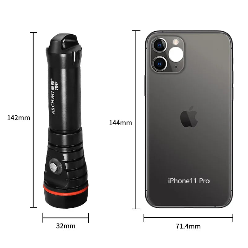 The ARCHON C15VP is designed with user-friendly features to enhance your underwater experience. The compact and lightweight design makes it easy to handle and maneuver underwater. With dimensions that ensure portability and ease of use, this dive light is suitable for both recreational and professional divers. The flashlight’s ergonomic design ensures a comfortable grip, allowing for prolonged use without causing hand fatigue.