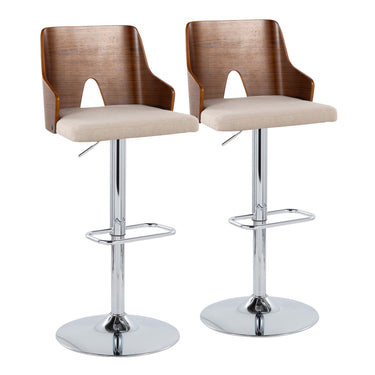Ariana - Mid-Century Modern Adjustable Barstool With Swivel With Rounded Rectangle Footrest (Set of 2) - Chrome / Walnut / Beige