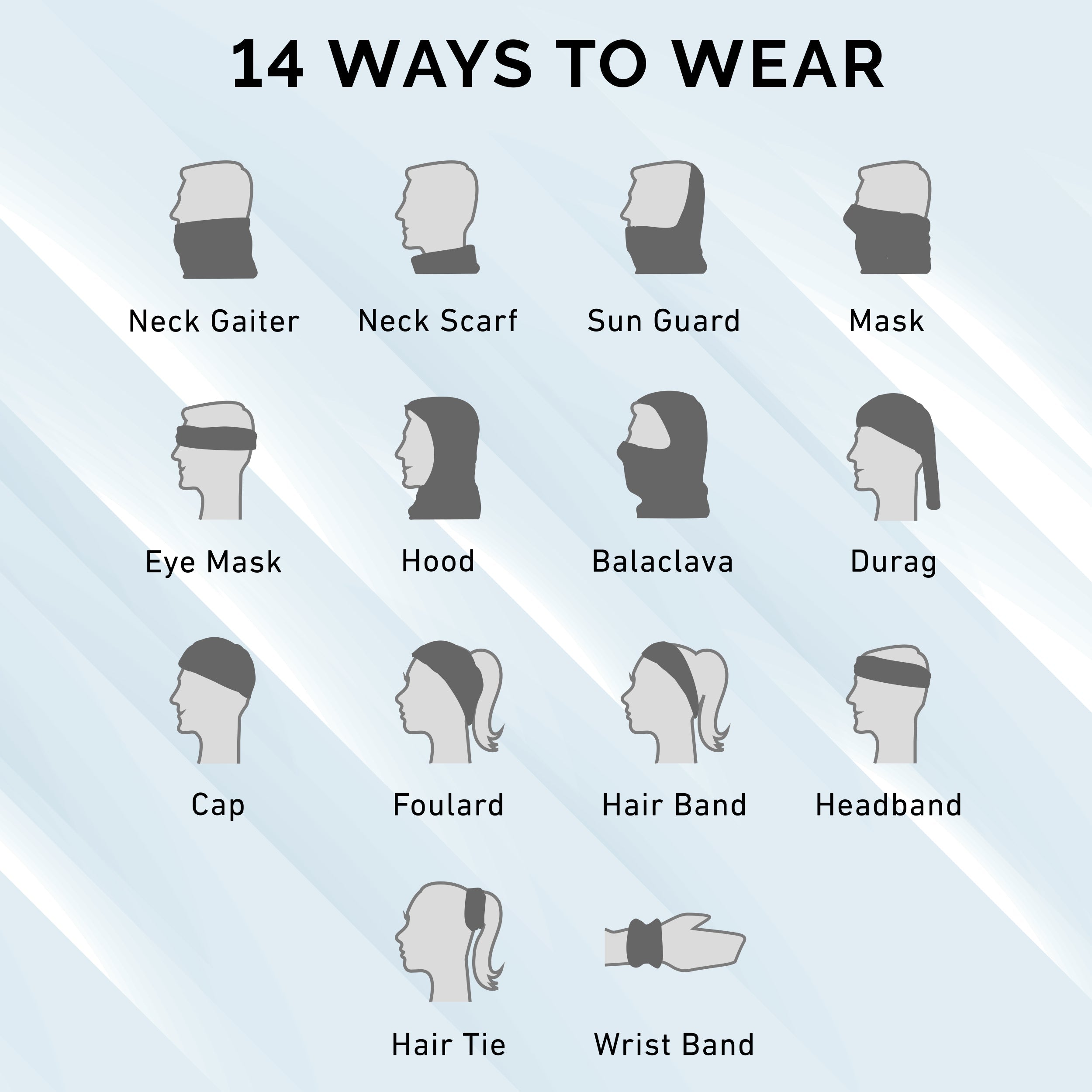 • 14 Ways to Wear: Use it as a headband while you run, and then quickly transform it into sun blocking face mask!