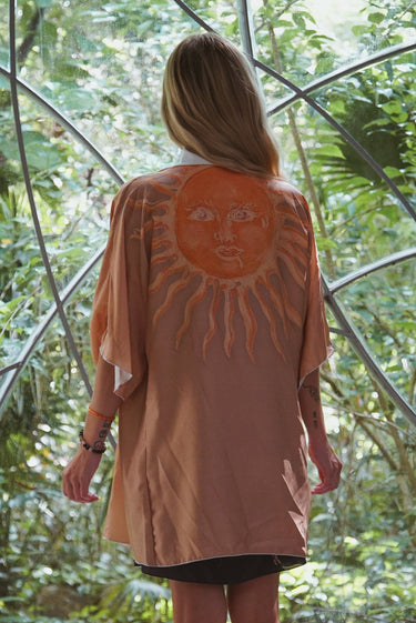 Prepare yourself for compliments when you wear your sun printed Capella Kimono in Sunguide