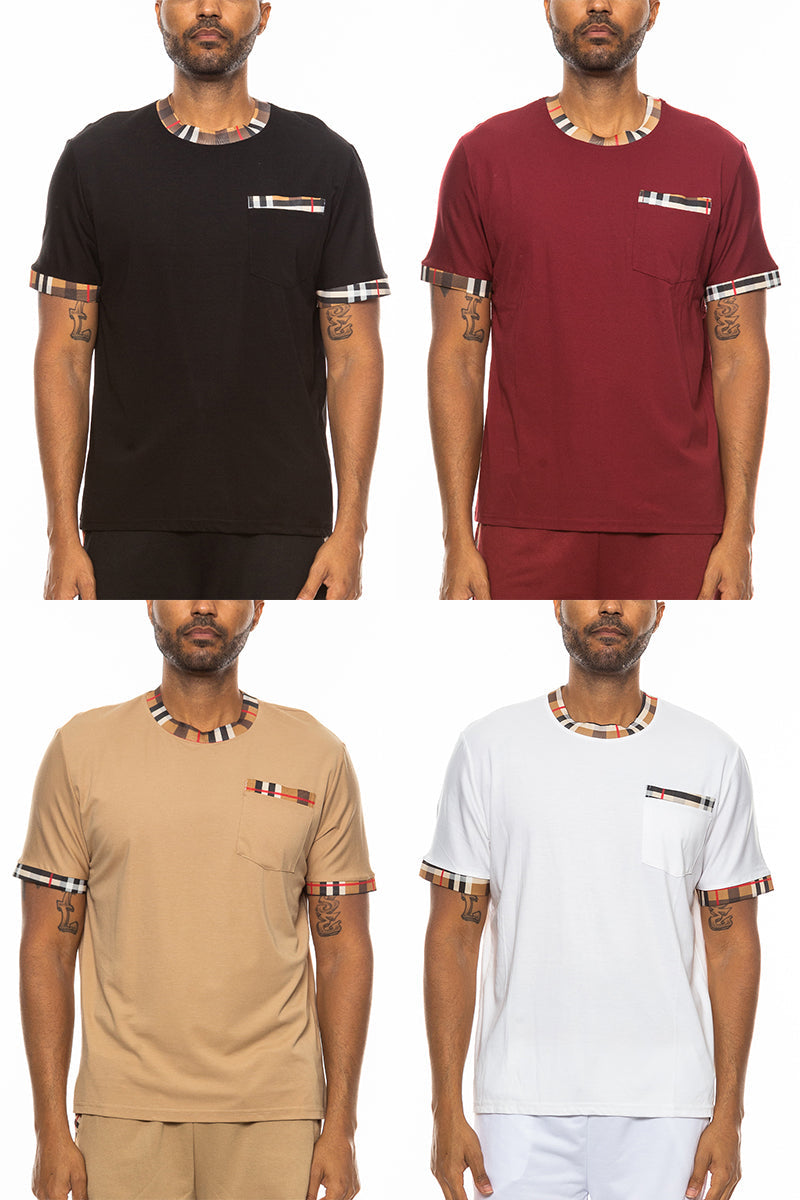 Checkered Plaid Collar, Sleeve Hem and Chest Pocket