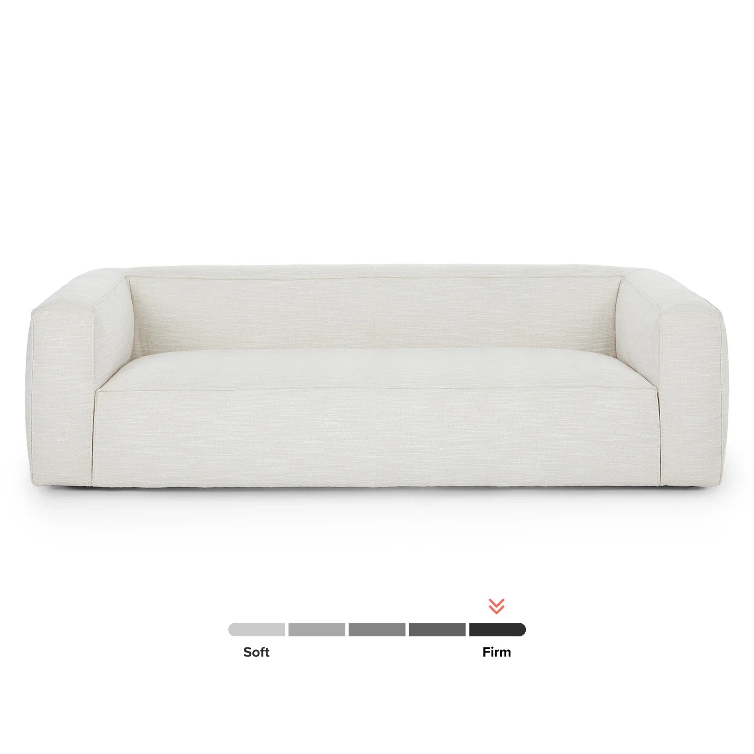 The Cigar 92" Leather Sofa in Rawhide Tan is displayed against a pristine white backdrop. Beneath the sofa, a firmness scale showcases its balanced support, offering a perfect blend of softness and firmness. The Cigar 92" Leather Sofa in Rawhide Tan is displayed against a pristine white backdrop. Beneath the sofa, a firmness scale showcases its balanced support, offering a perfect blend of softness and firmness.
