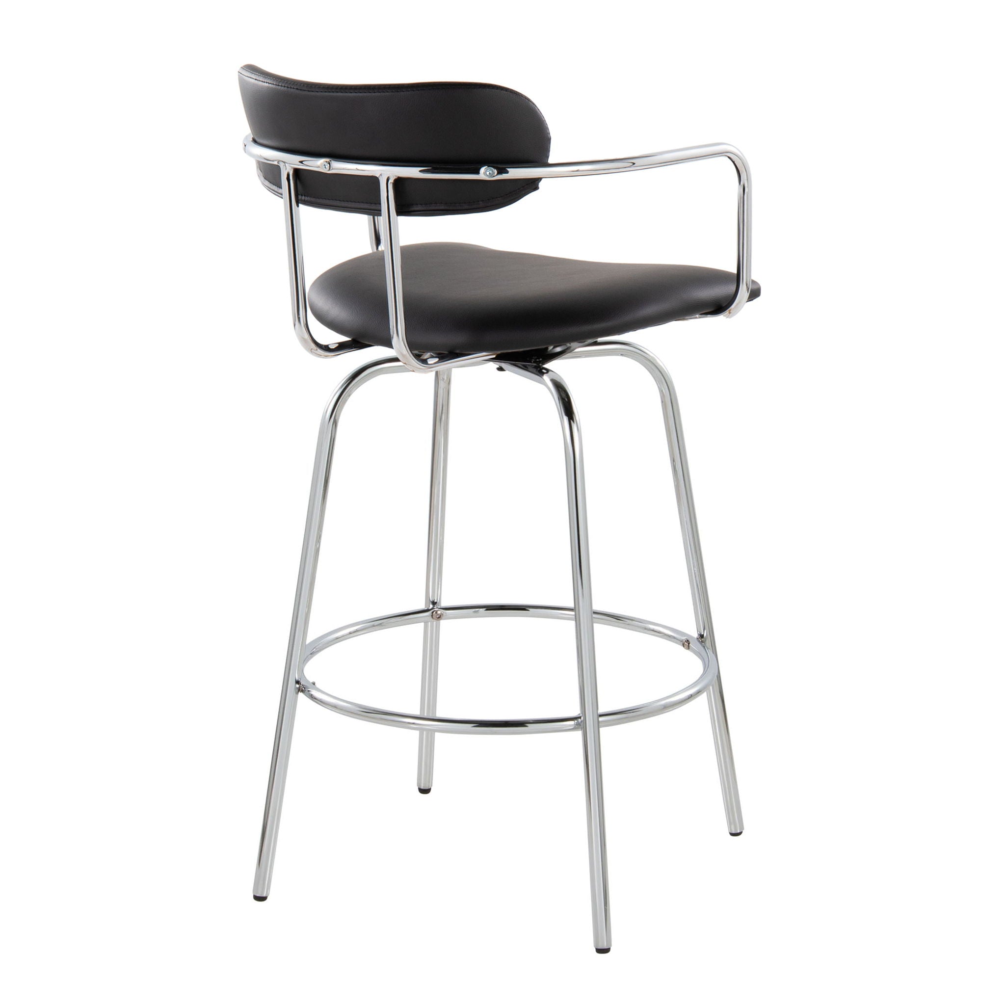 Demi - Contemporary Fixed Height Counter Stool With Swivel With Round Footrest (Set of 2) - Chrome / Black