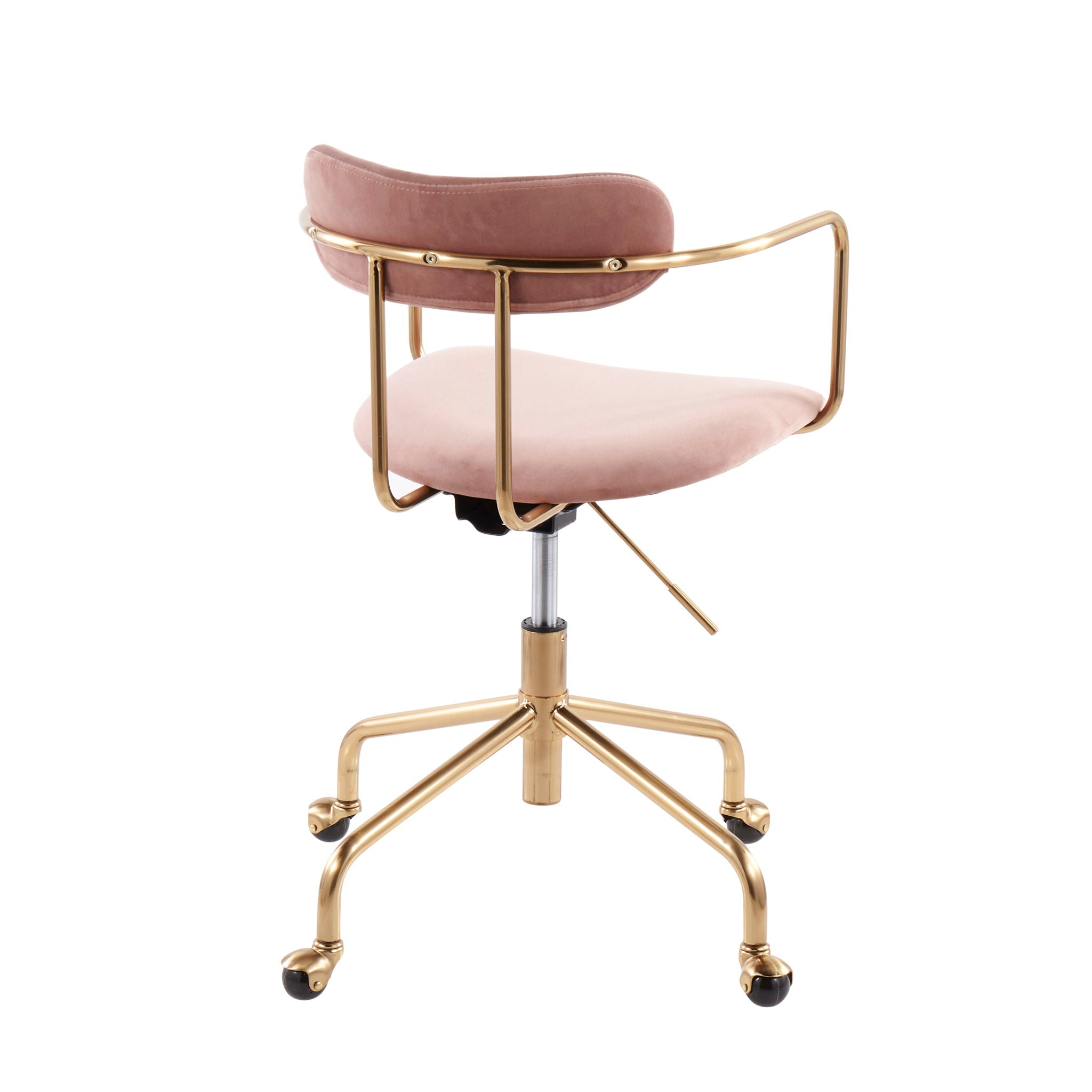 • Modern Design: The Demi Task Chair by LumiSource enhances your home office with its contemporary style, featuring an open back and luxurious velvet upholstery. It adds a modern touch to any space, promising both elegance and comfort.