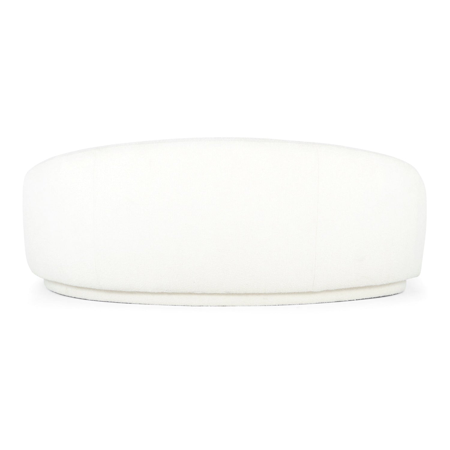 The Excelsior Sofa Cream features a plush, modern design with a rounded, curved backrest and a smooth, textured fabric in beige. It is supported by a matching circular base that complements its sleek and contemporary aesthetic. The Excelsior Sofa Cream features a plush, modern design with a rounded, curved backrest and a smooth, textured fabric in beige. It is supported by a matching circular base that complements its sleek and contemporary aesthetic.